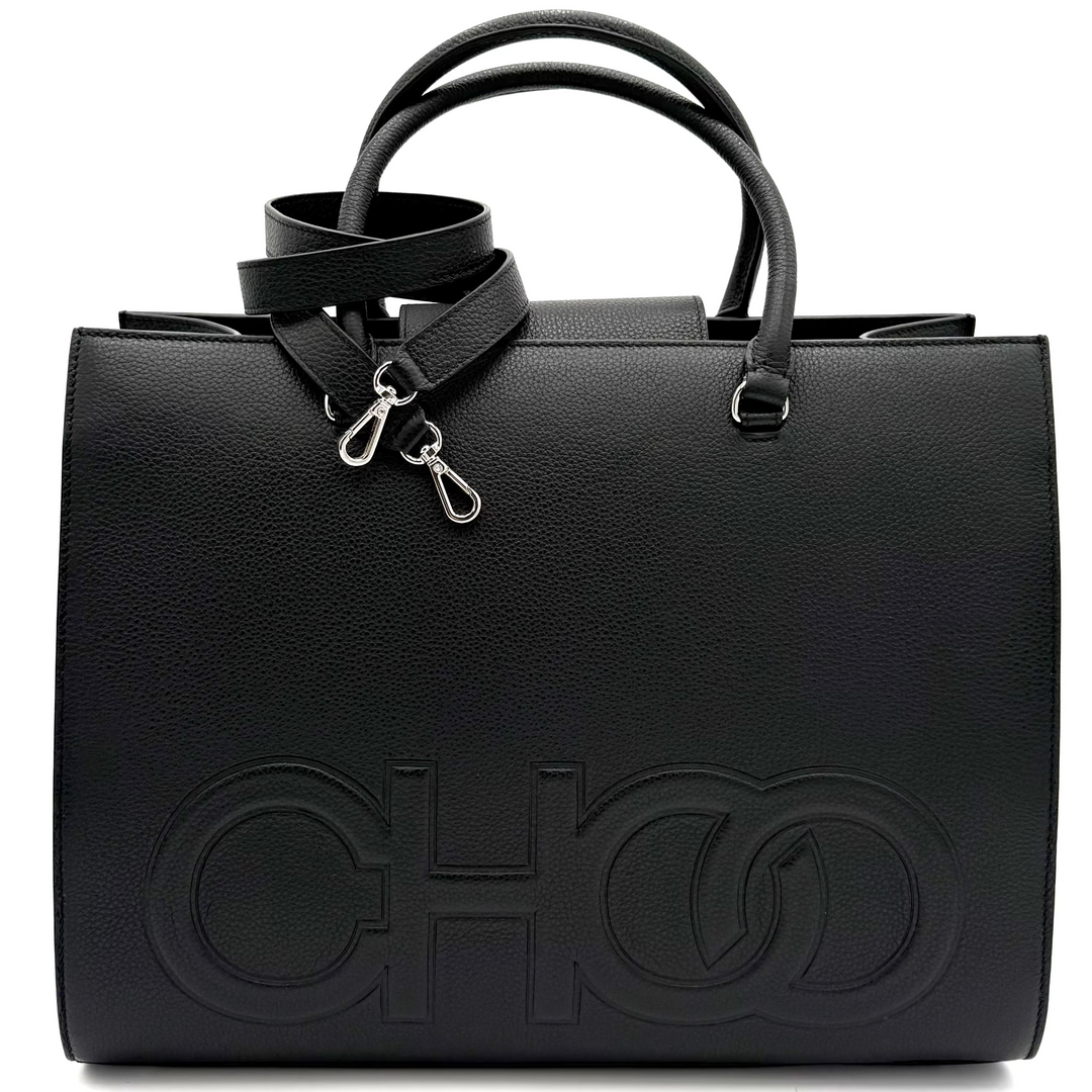 Jimmy Choo Pebbled Leather Book Logo Tote