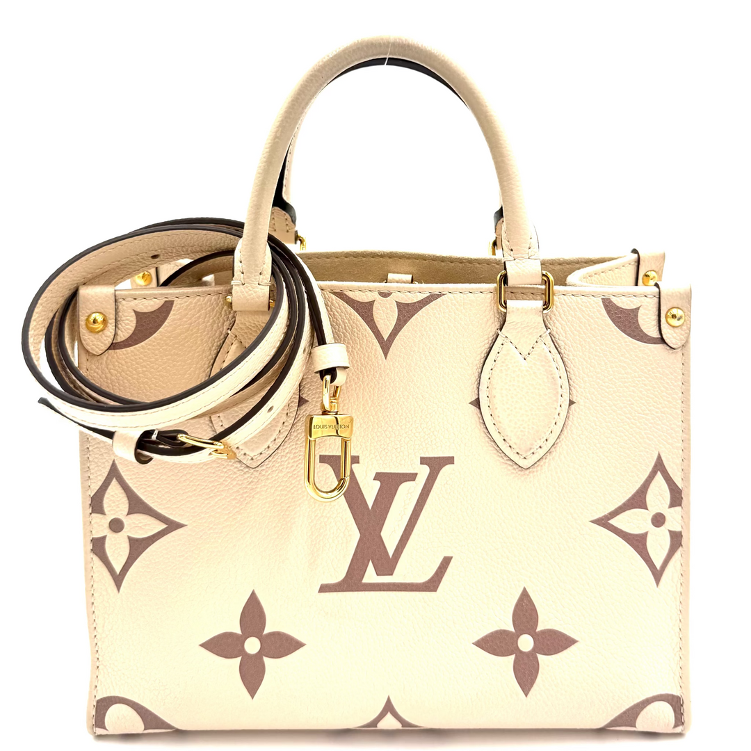 Monogram Empreinte Leather On The Go PM Bi-Colour in Creme/Bois De Rose