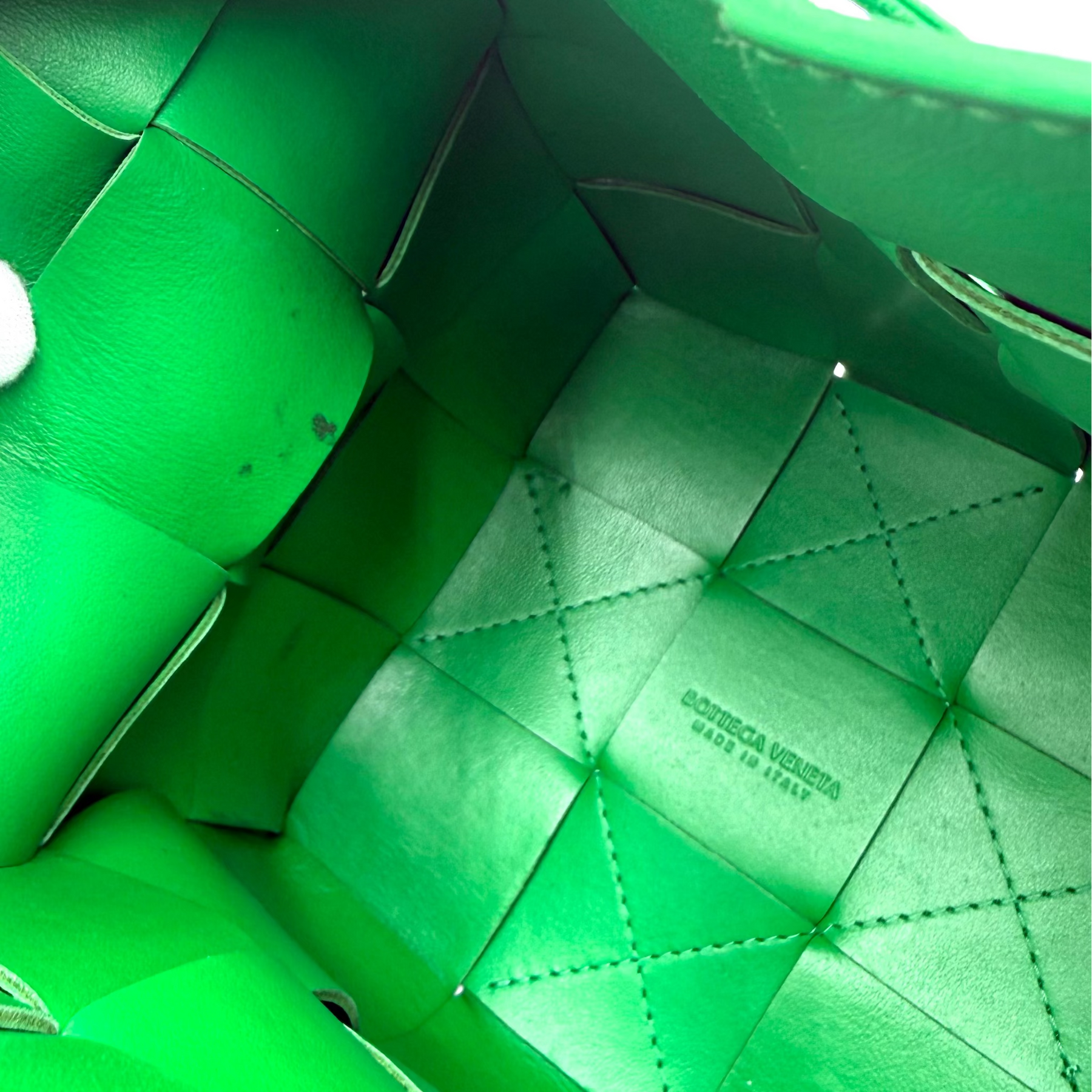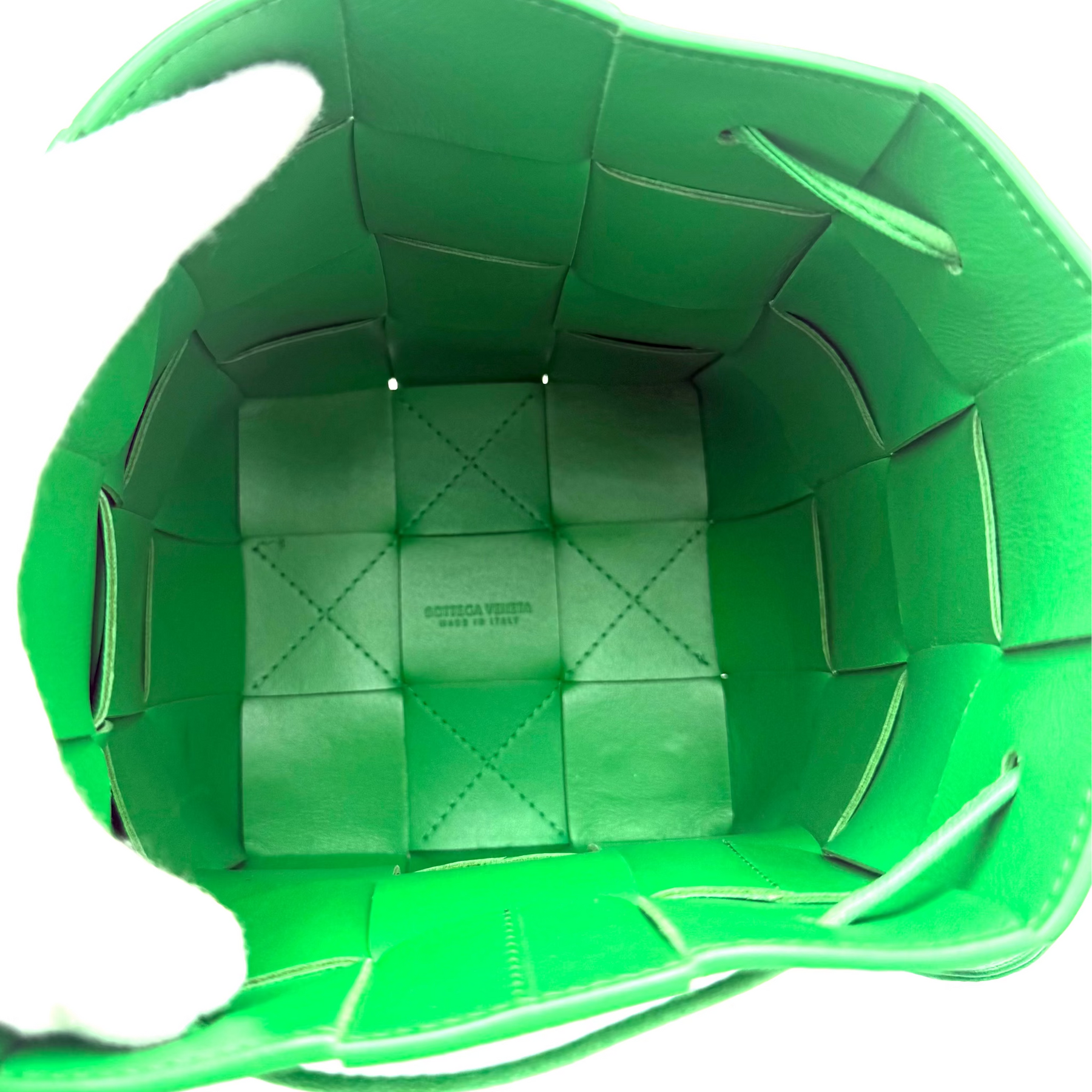 Made in Italy from handwoven strips of supple nappa leather, this bucket bag comes in a striking Parakeet green and is finished with knotted straps that give it a bold, distinctive look.