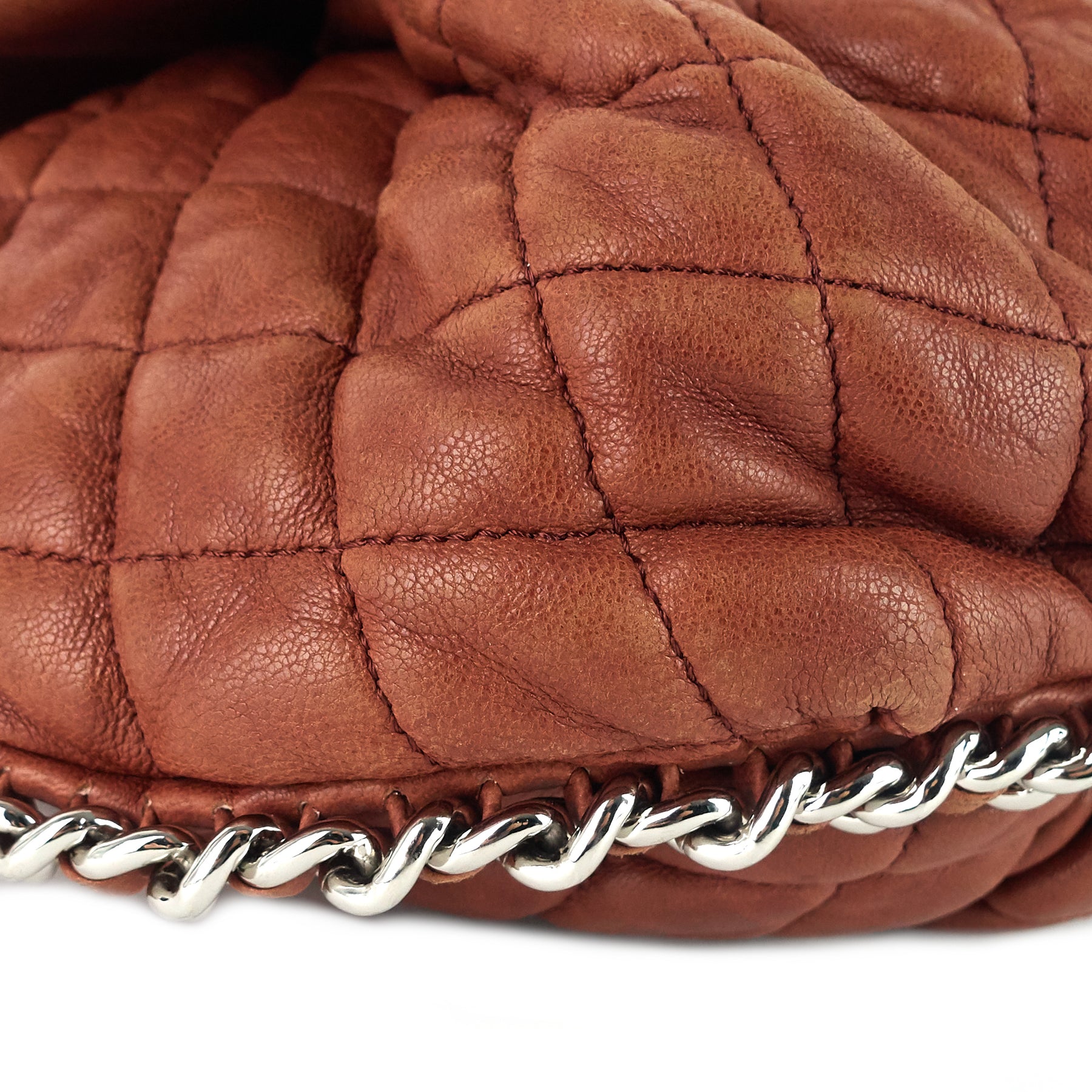 Overall: The exterior is in good condition with scuffing to the edges and darkening/colour transfer to the back of the bag. The interior is in great condition with spots of darkening throughout. The hardware remains bright and shiny with minor wear consistent with use.