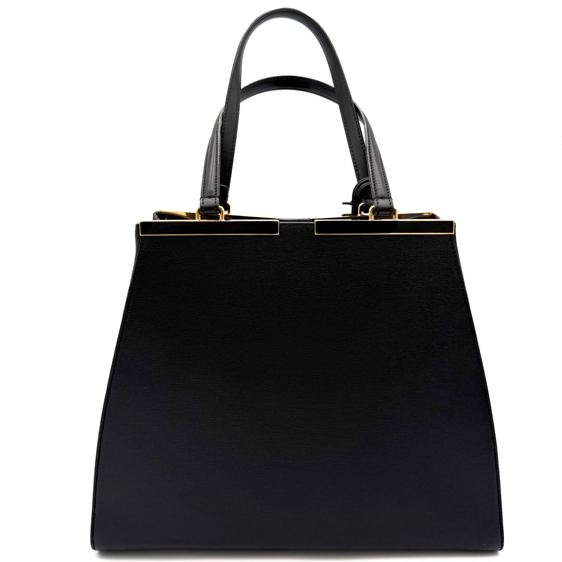 A structured tote made from vitello daino calfskin leather with gilt logo-engraved top bars and protective bottom studs. Inside, the suede-lined interior has multiple side pockets to keep everything neatly organized.