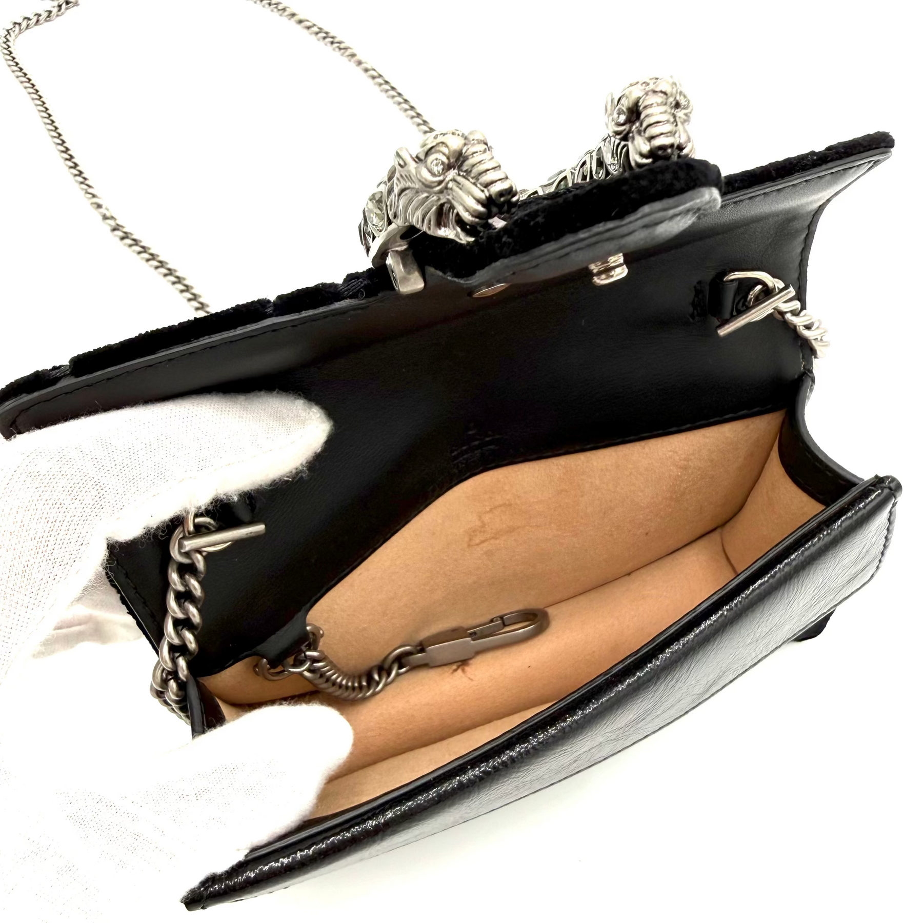 Inspired by the ancient Greek god Dionysus, a two-headed tiger spur stands out on the front of this compact velvet bag. The suede interior is perfectly sized for the bare essentials, while a removable strap means the style can be worn crossbody or carried as a fashionable clutch.