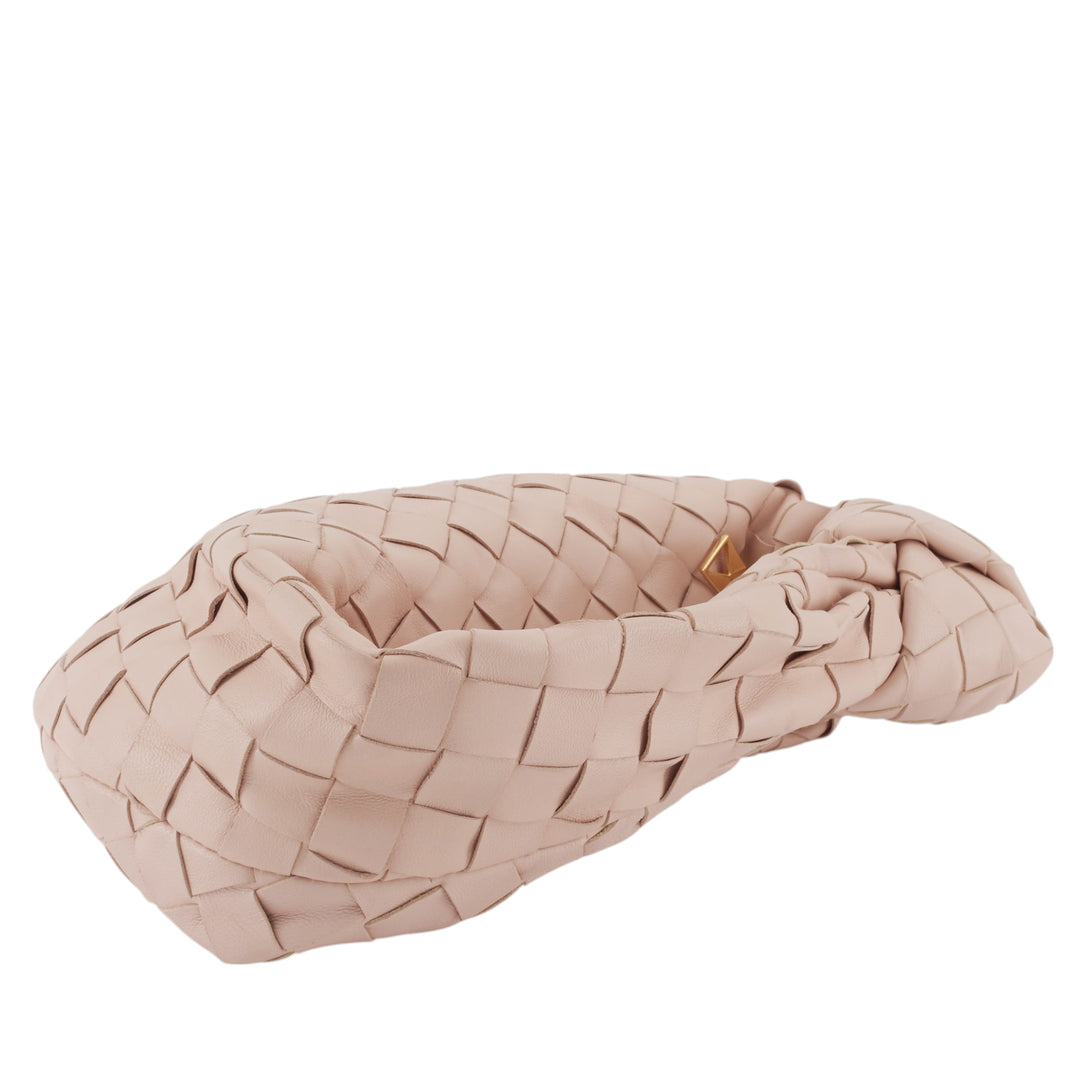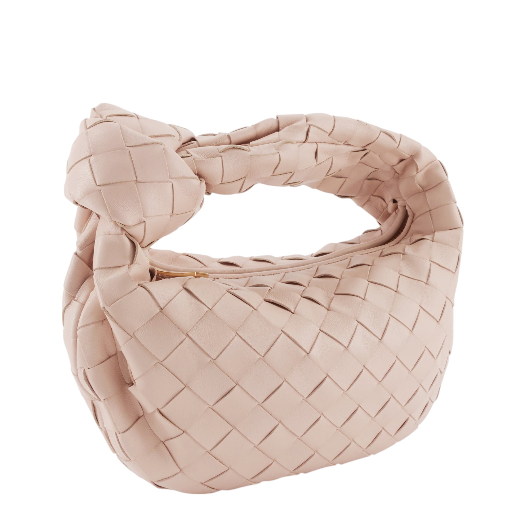 A knotted strap arcs over this compact hobo bag crafted in a crescent-shaped silhouette from handwoven strips of soft leather.