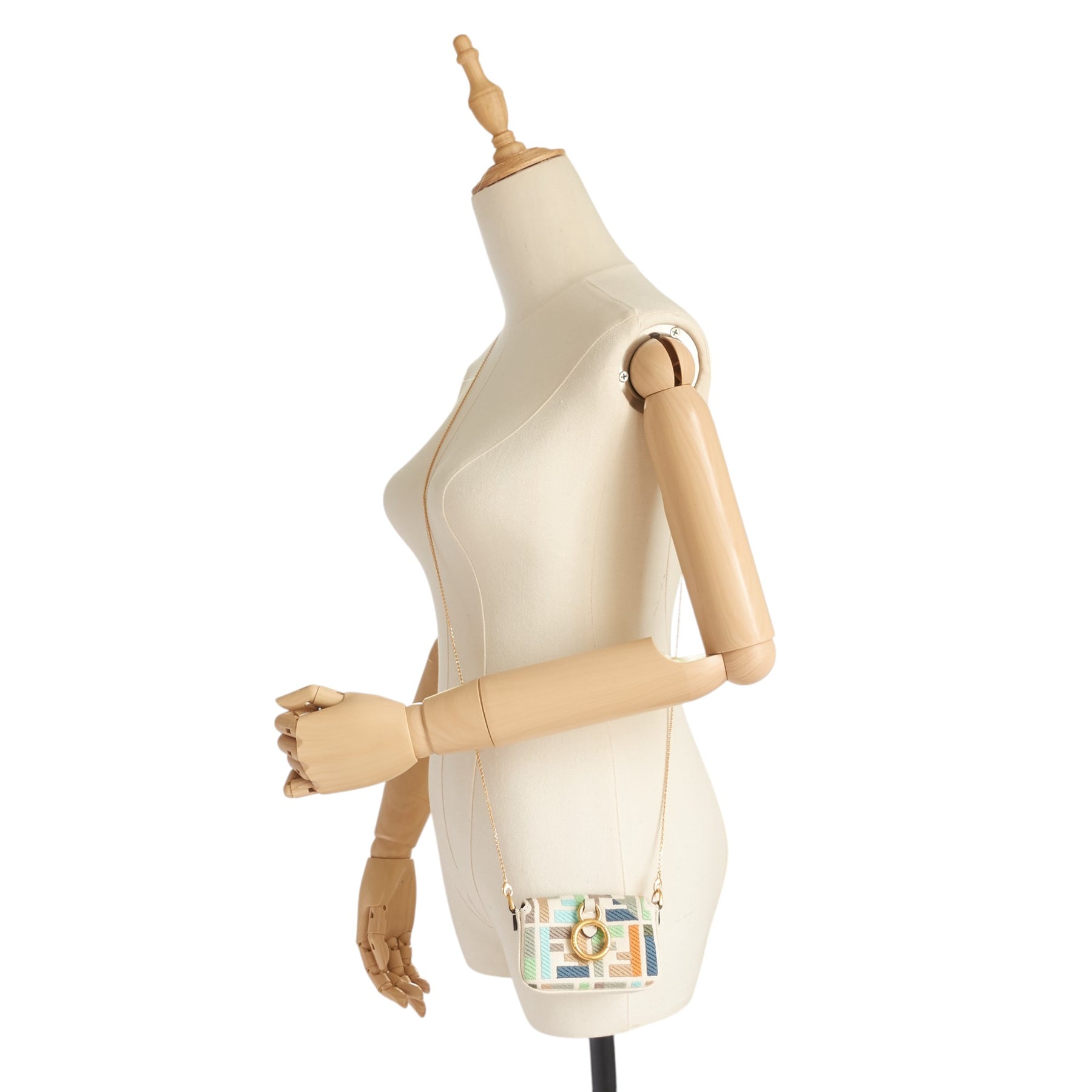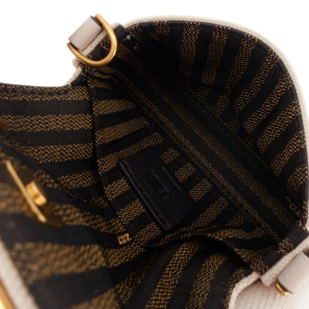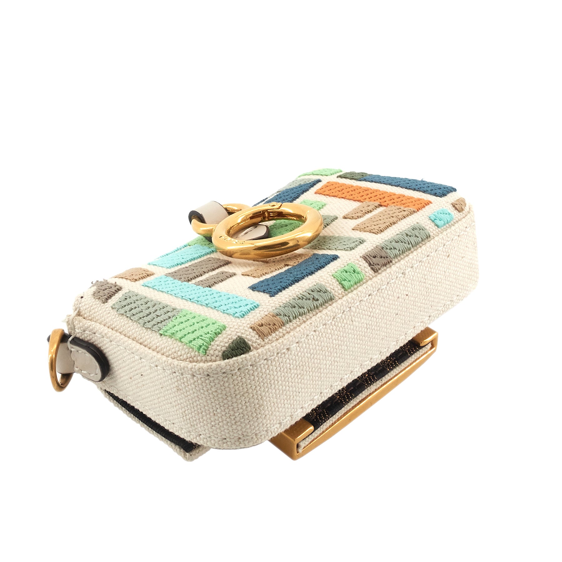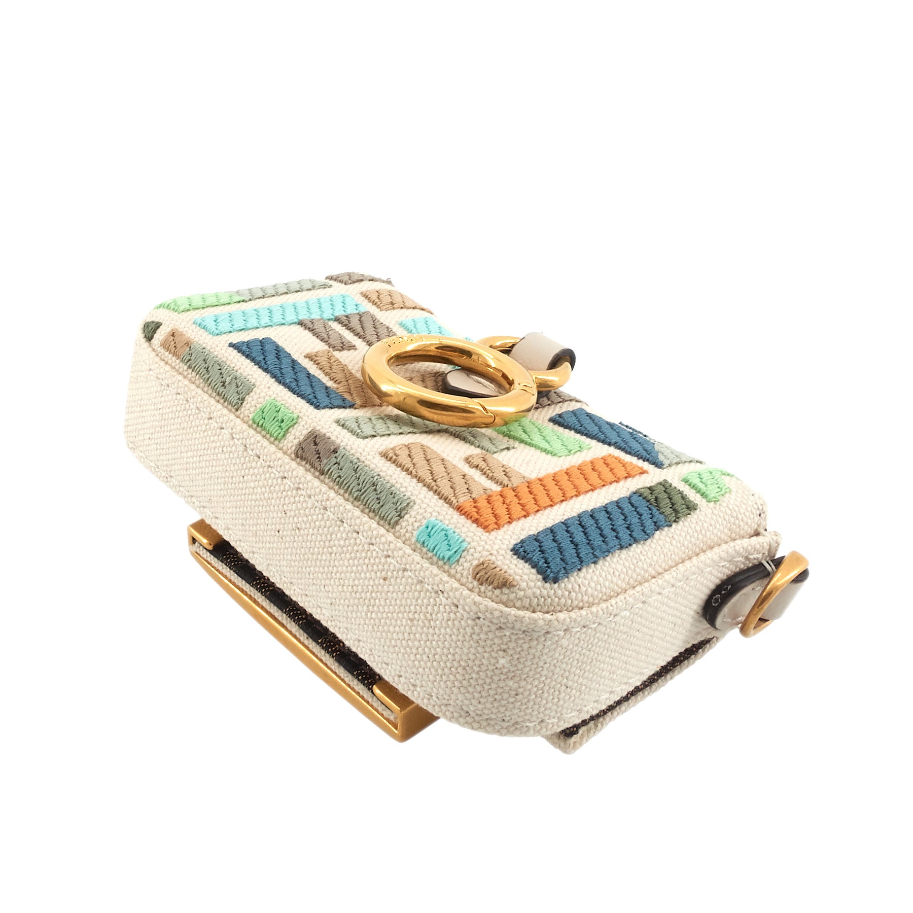 Fendi's iconic double-F logo distinguishes both the hardware and embroidered canvas of a baguette bag that's small in size but big in style.