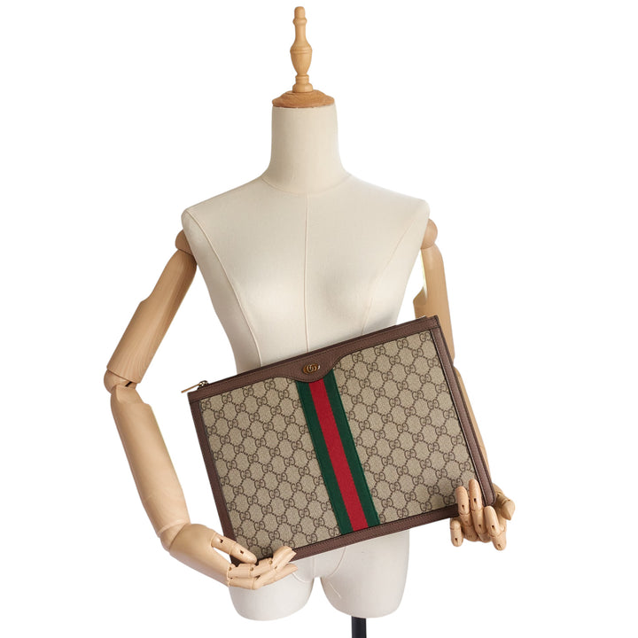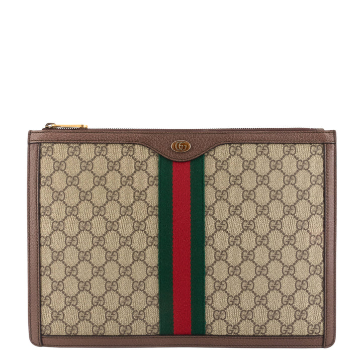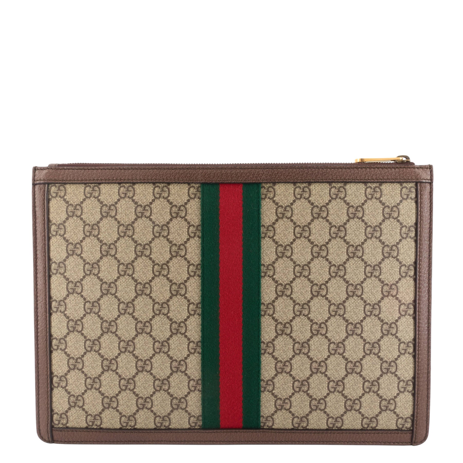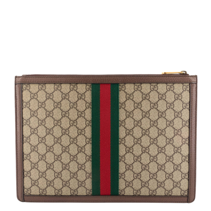 Keep your workday essentials organized with this Italian-made pouch crafted from GG Supreme coated canvas with signature web striping and enameled hardware.