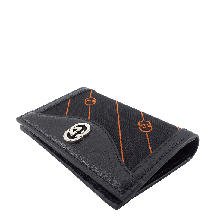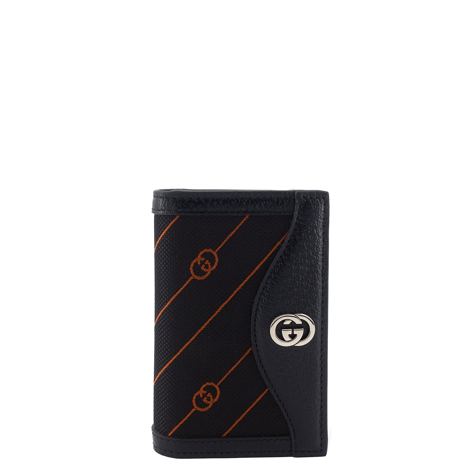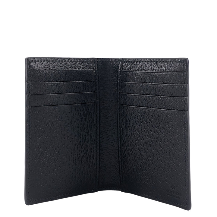 Signature double-G monograms dot the exterior of a vertical bifold wallet designed with space for cash, cards and receipts.