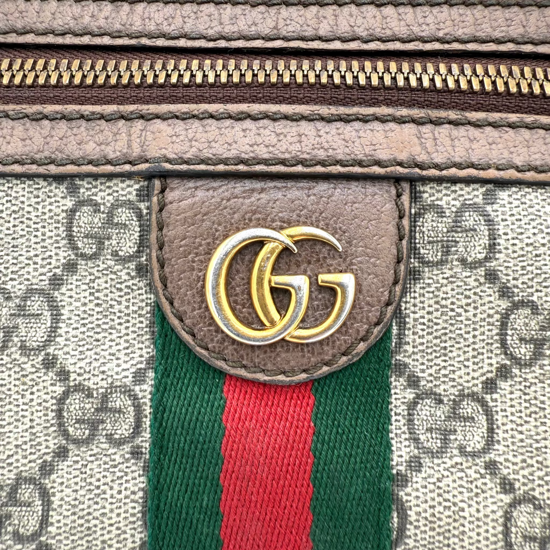 Though well-worn, this piece remains fully functional – a testament to Gucci's enduring craftsmanship. Signs of wear include softening of the canvas, minor fading, and light scuffs, especially on the leather trim and hardware. These add character and tell the story of a piece that’s been truly lived in.