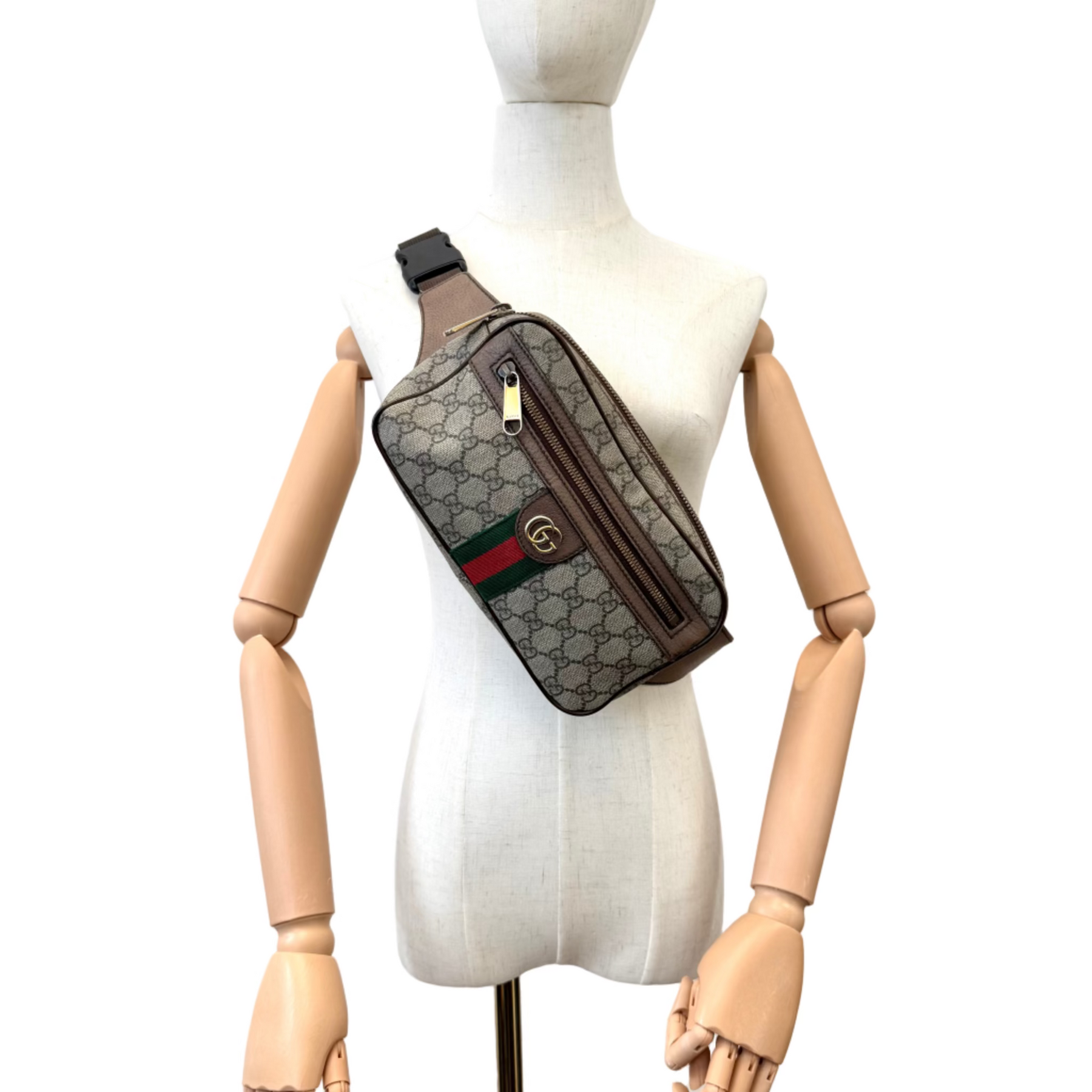 Add a touch of vintage luxury to your everyday style with this authentic Gucci GG Supreme Ophidia Belt Bag. Featuring the iconic GG Supreme monogram canvas with signature green and red web detailing, this belt bag blends timeless design with practical wearability.