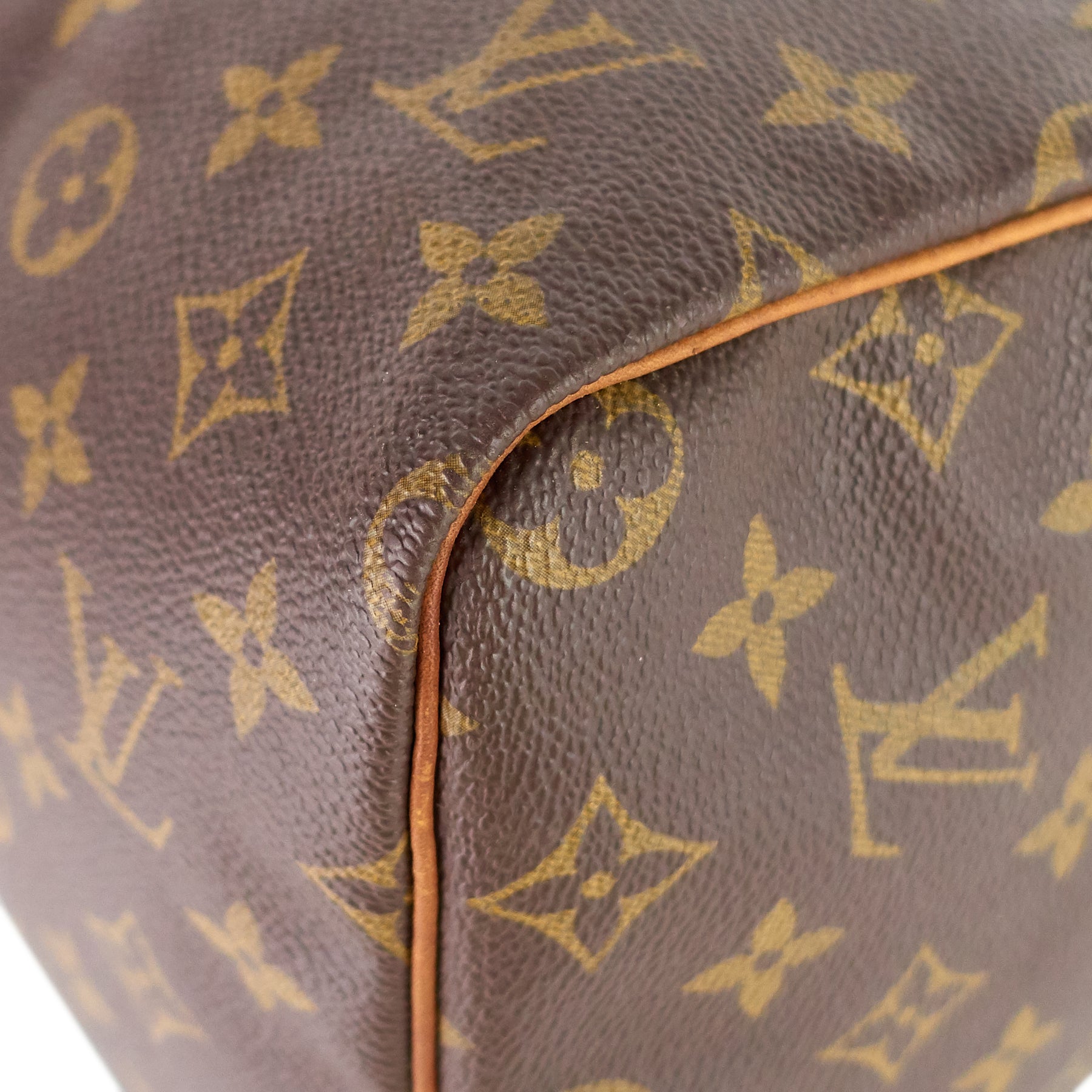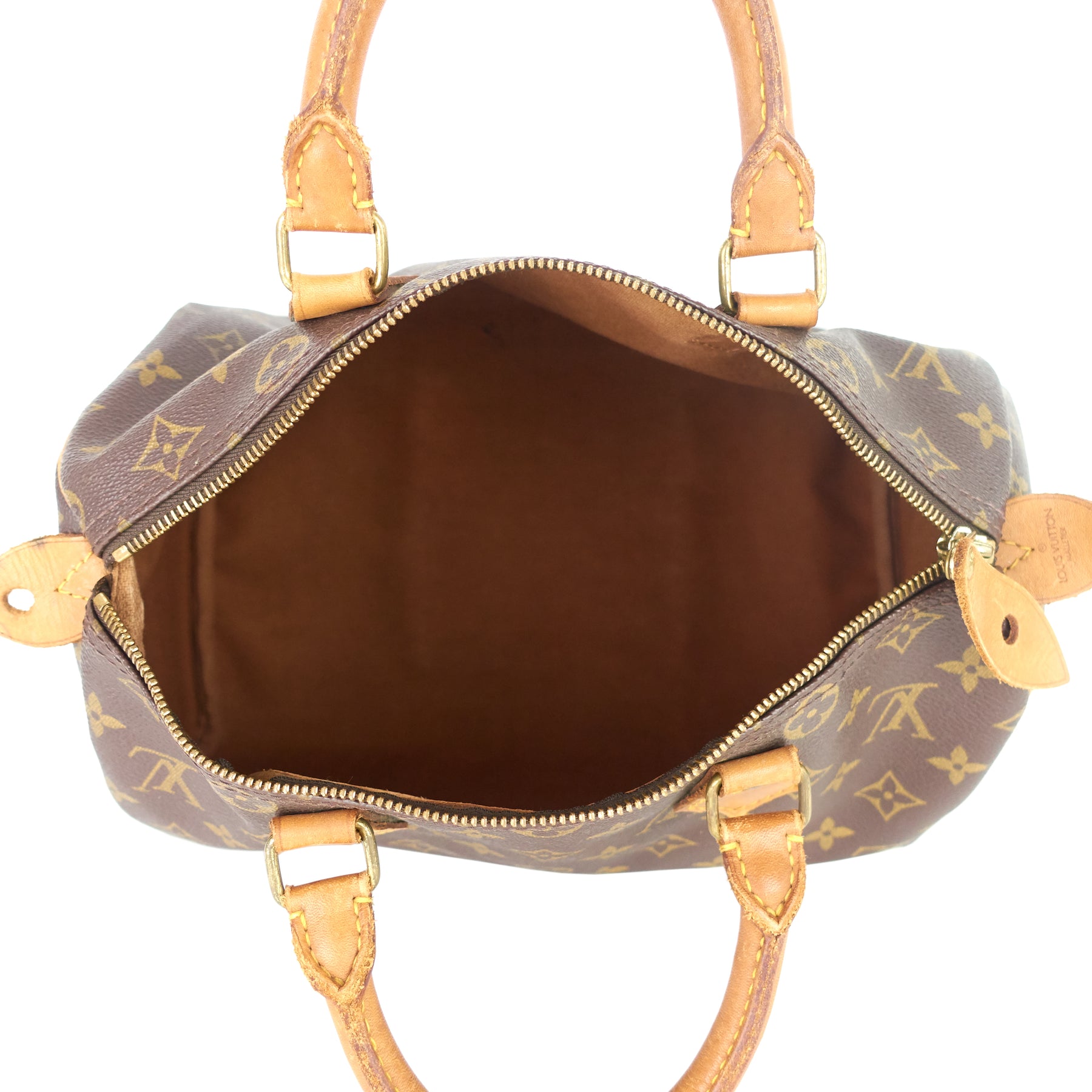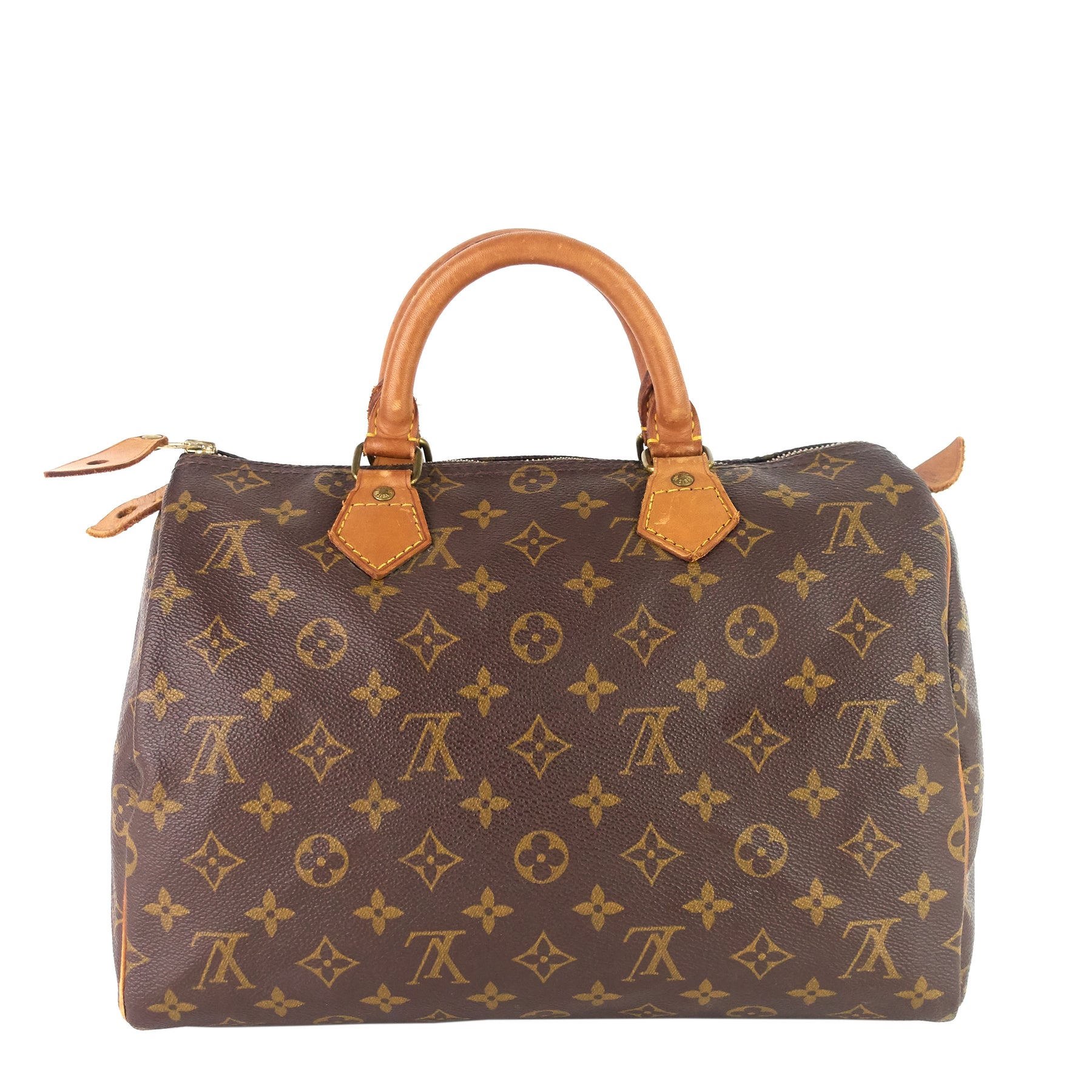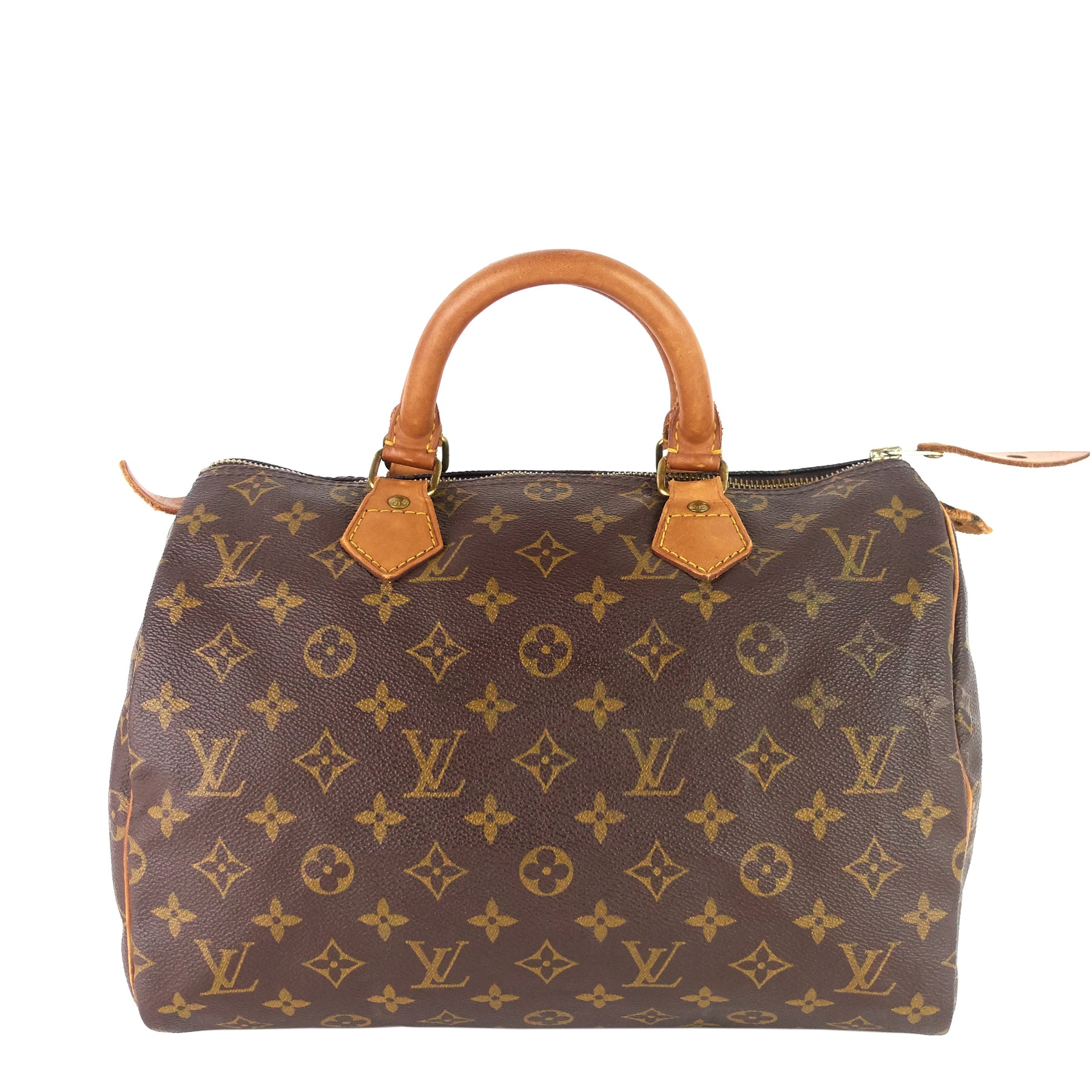 First debuted in the '30s, the Louis Vuitton Speedy has enjoyed lasting popularity thanks to a distinct silhouette reimagined time and again in many different canvases and leathers. This particular style is made from monogrammed canvas with natural cowhide leather trim and golden hardware.