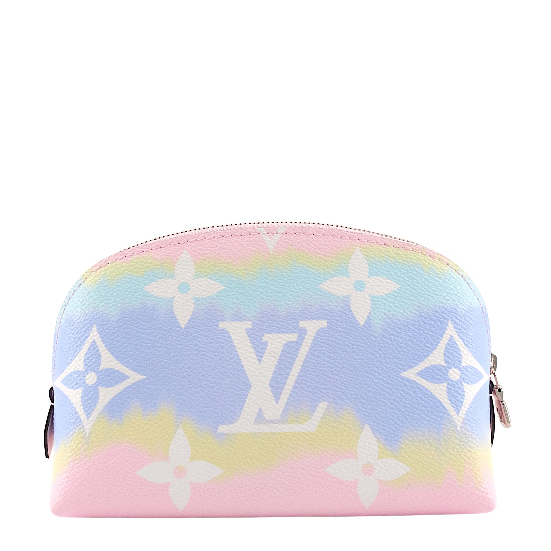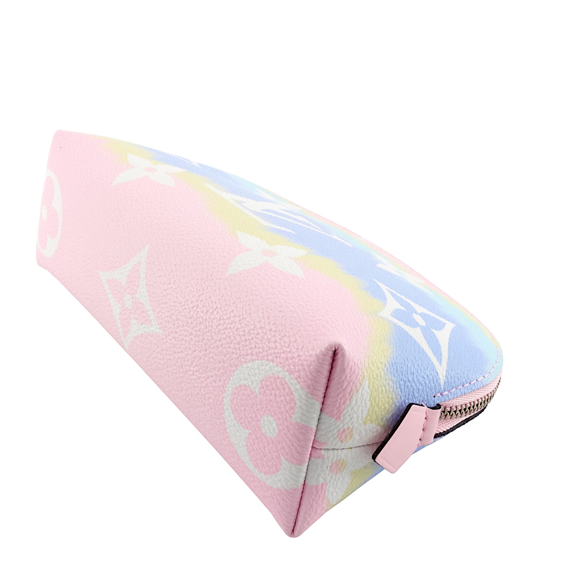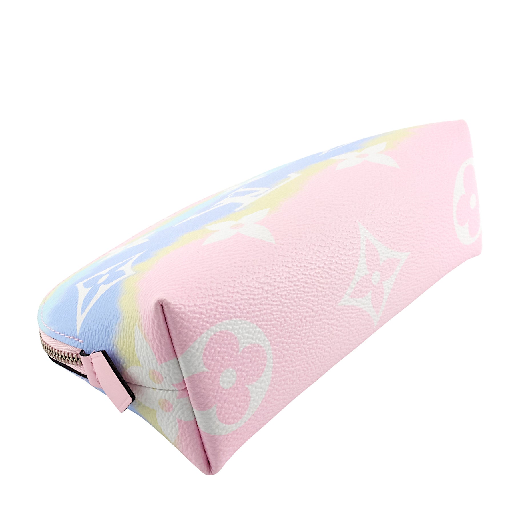 Keep your makeup and cosmetics organized while on-the-go with this compact pouch made of pastel-coloured canvas.