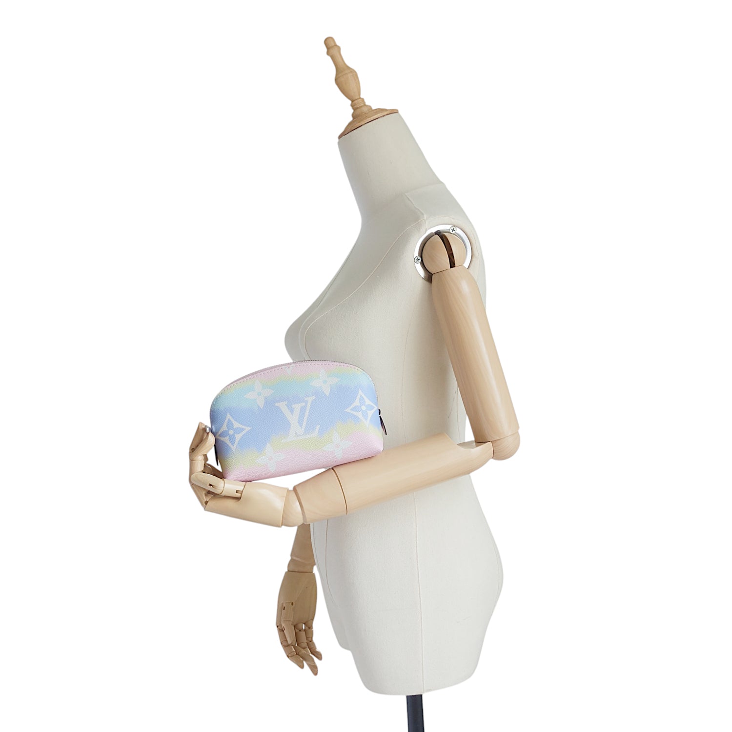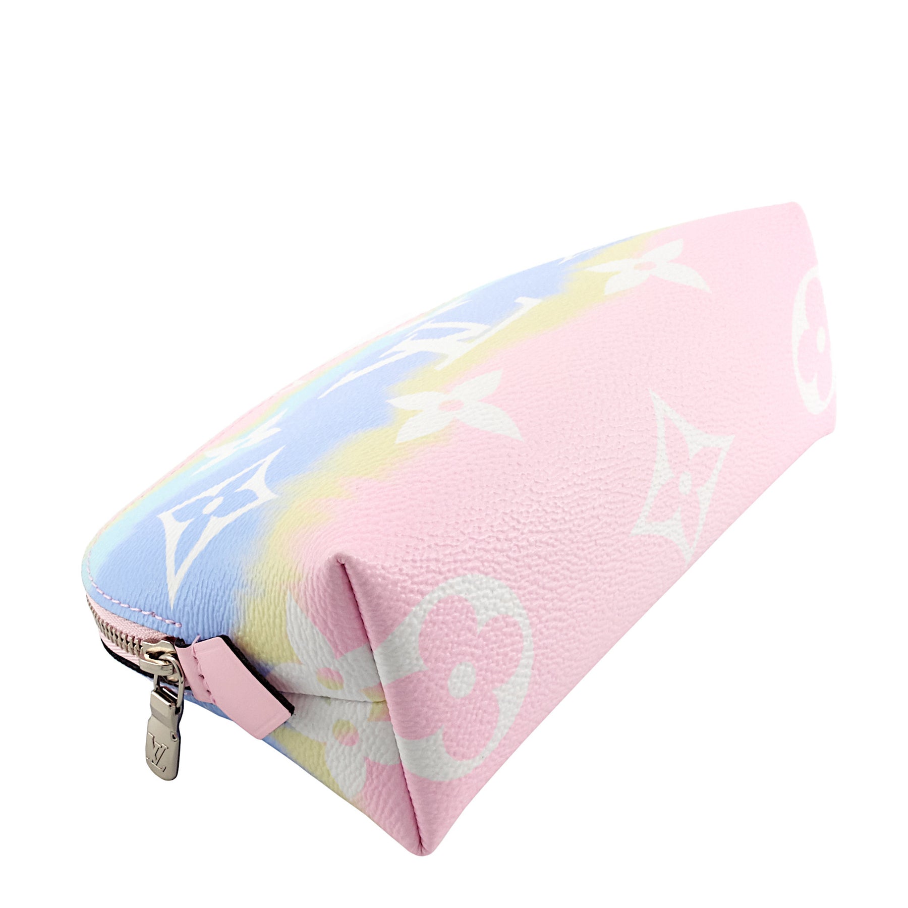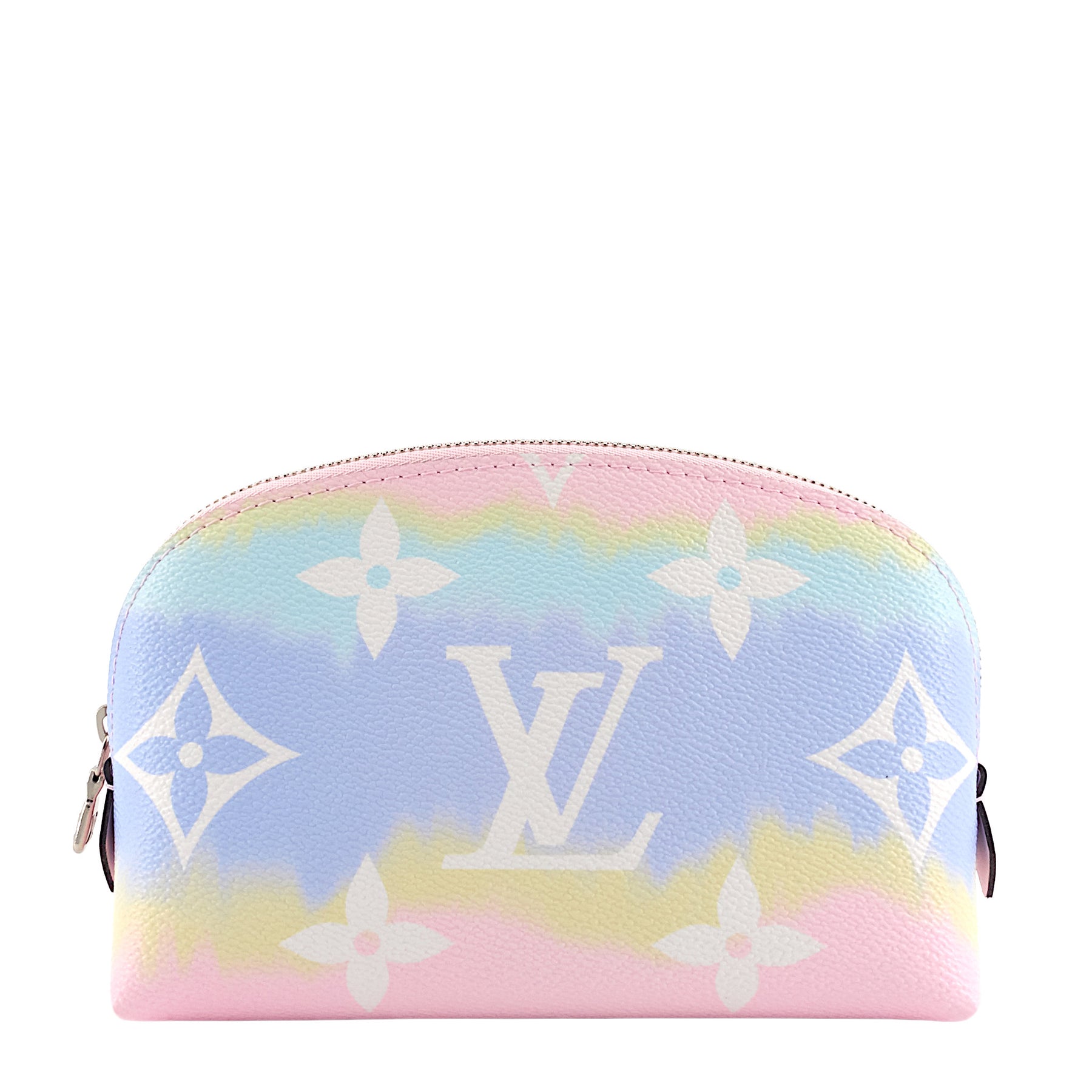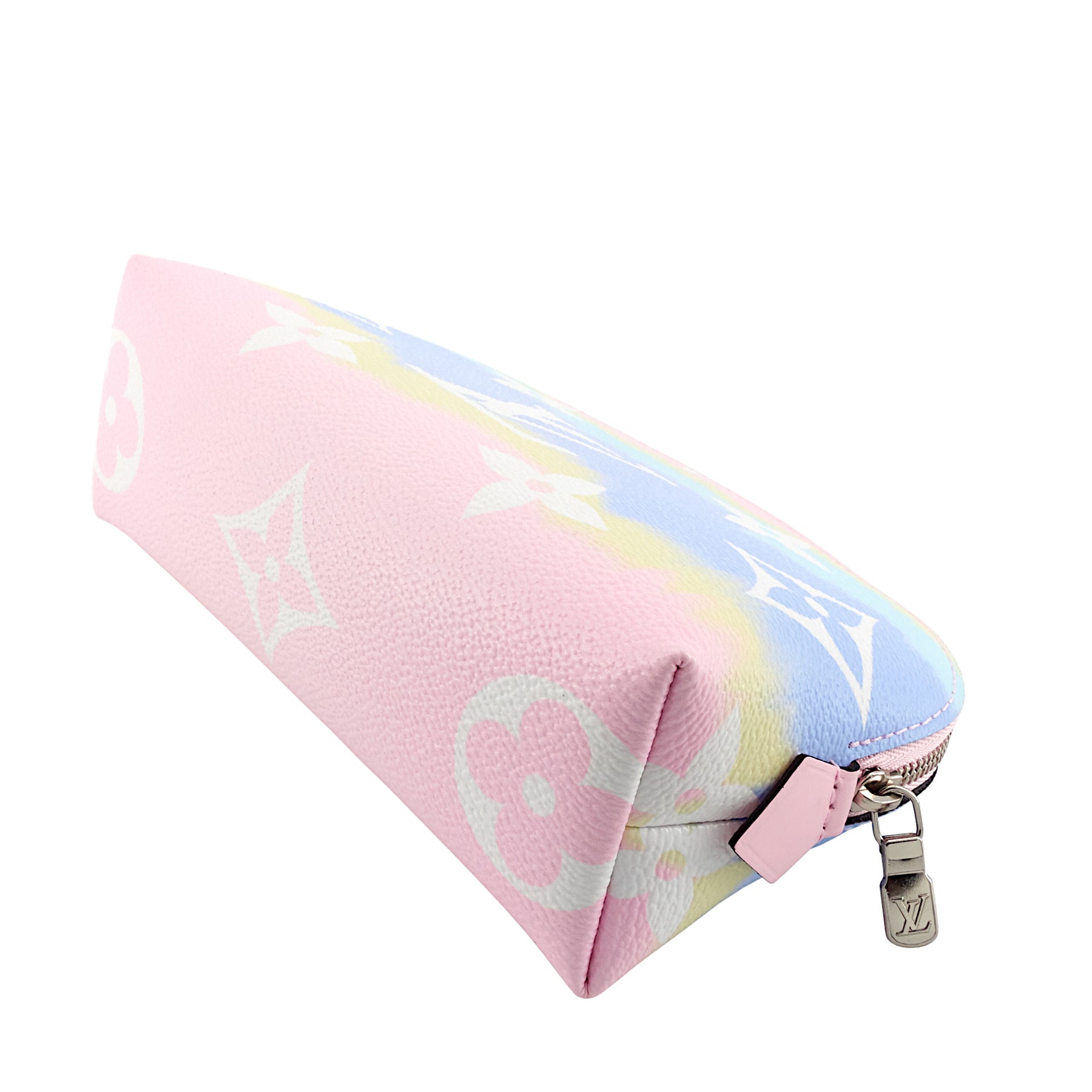 Keep your makeup and cosmetics organized while on-the-go with this compact pouch made of pastel-coloured canvas.