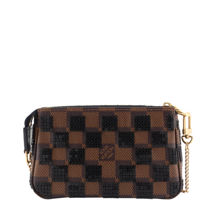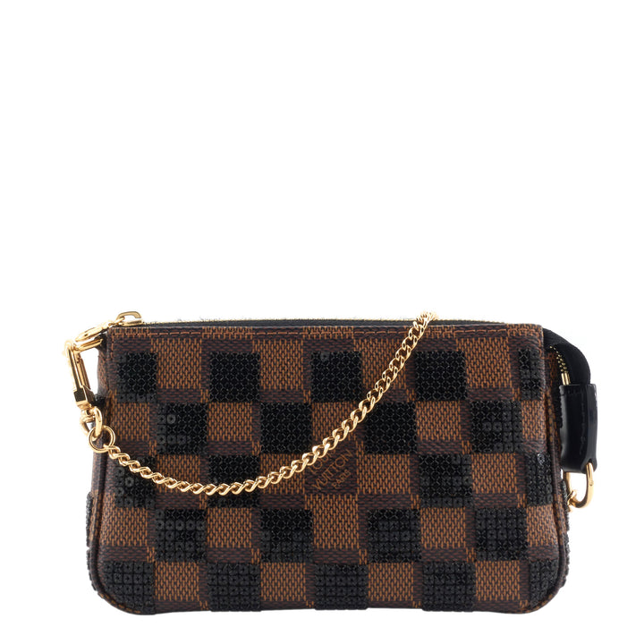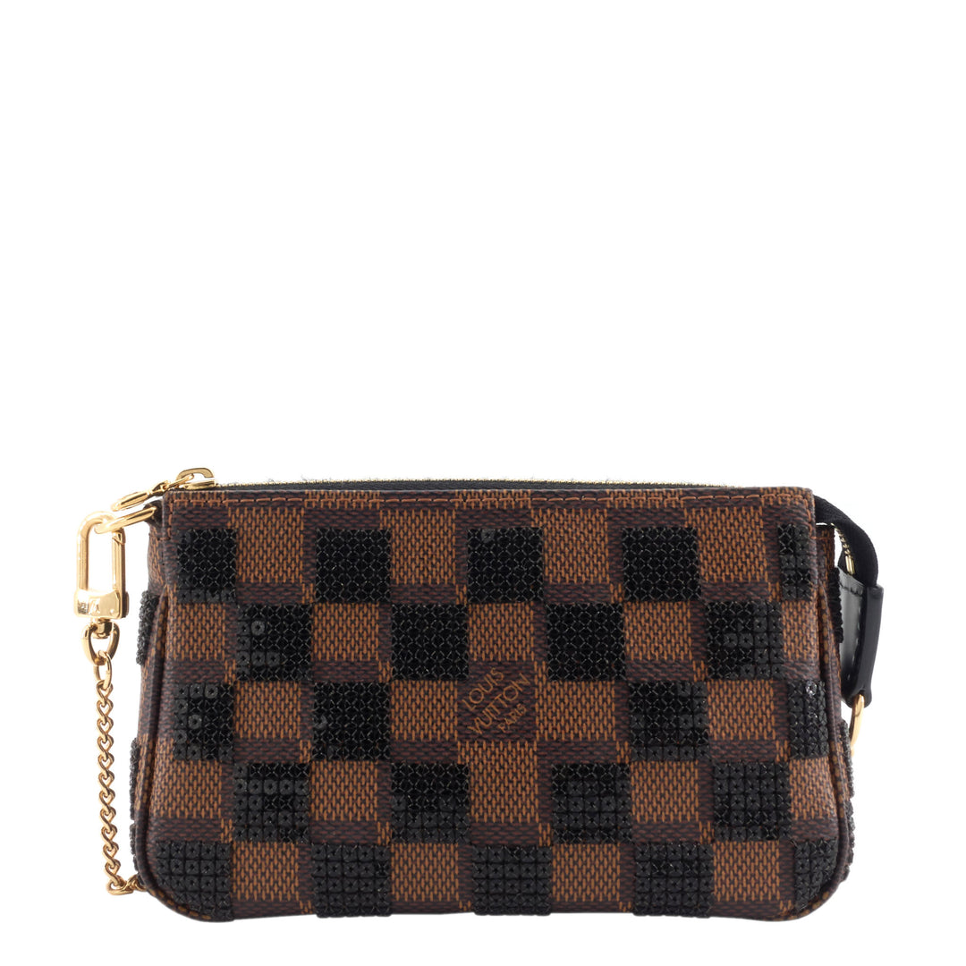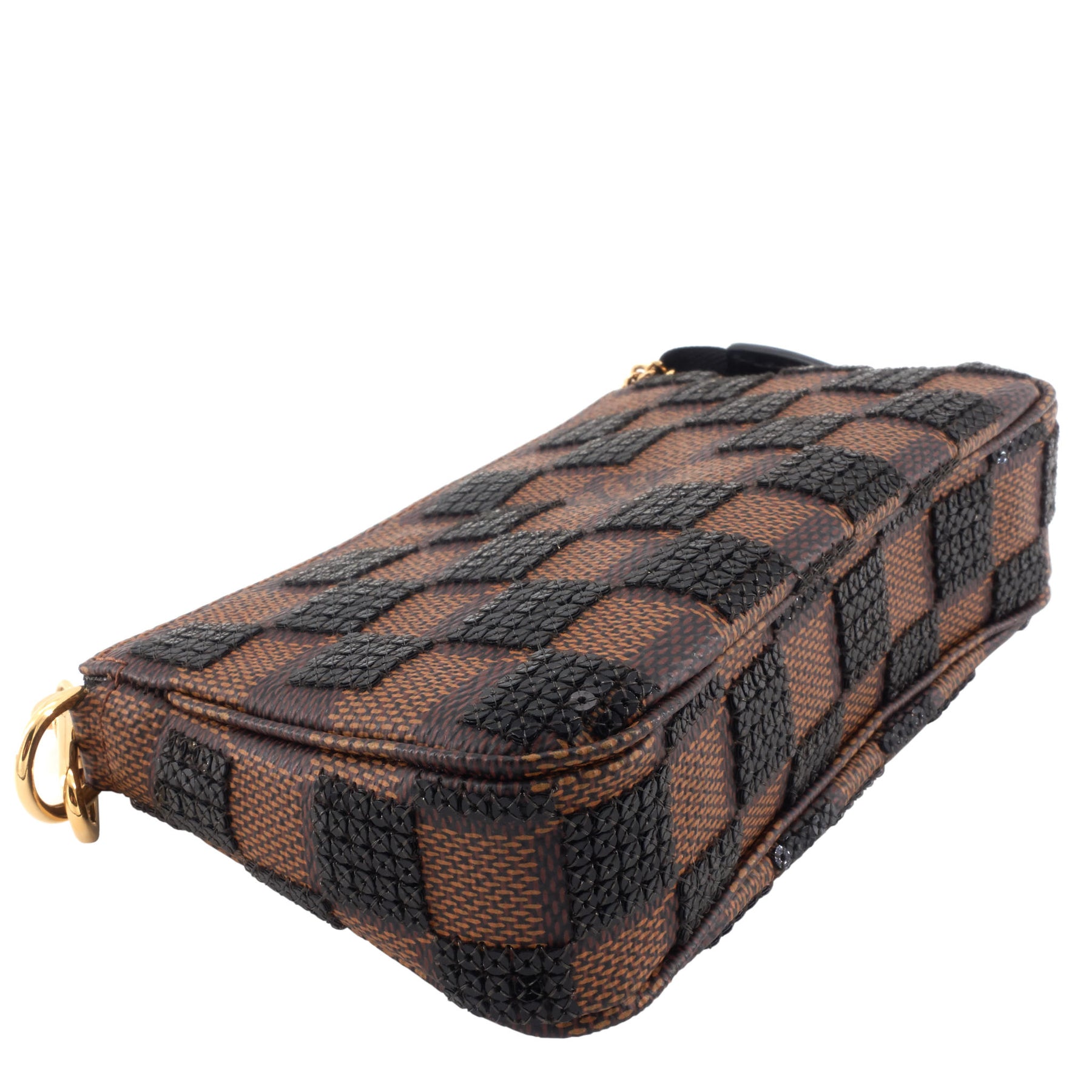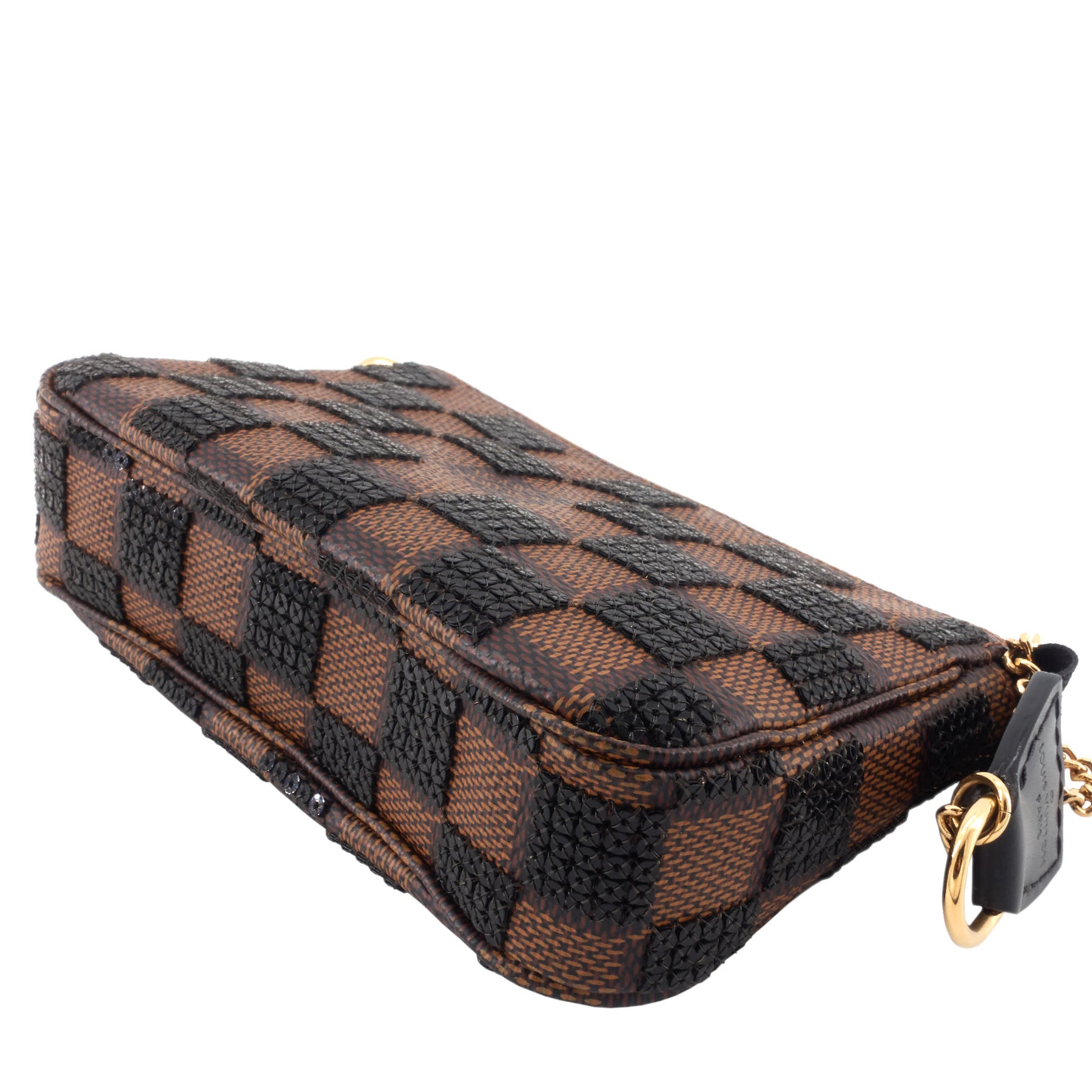 Glam up your outfit with this compact evening bag made of Damier Ebene coated canvas embroidered with paper-thin sequins.