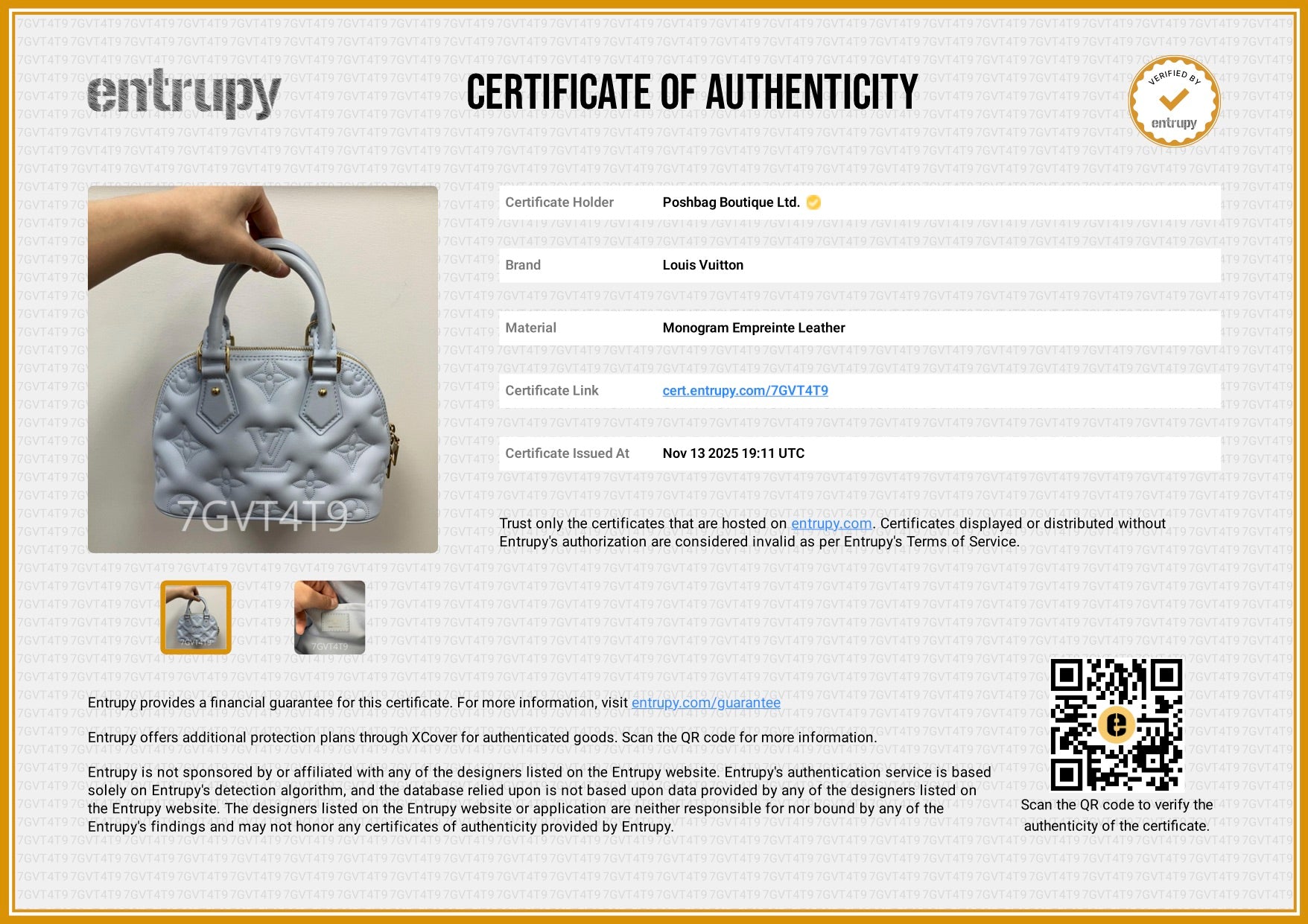 Crafted from smooth, high-quality leather, the bag features the Alma’s iconic dome shape, sturdy rolled handles, and a detachable crossbody strap for effortless versatility. The compact size is perfect for daily essentials—phone, cardholder, keys, lip gloss—while the secure zip closure keeps everything neatly tucked away.