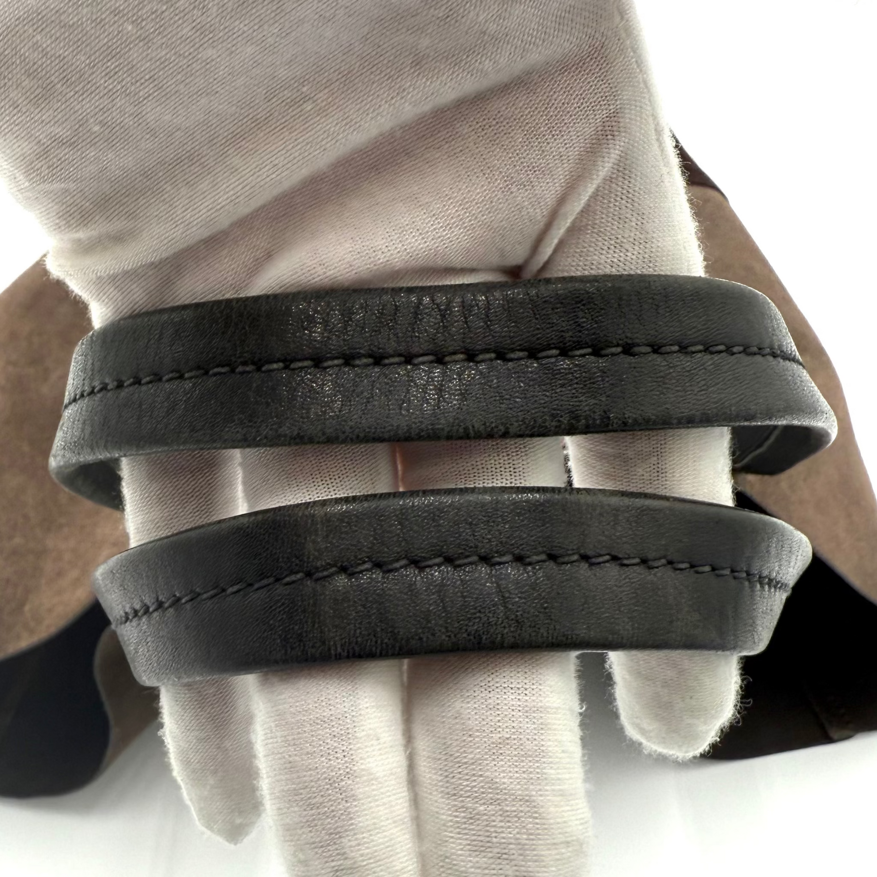 Overall: Some flattening of the suede in areas. A few signs of wear to the interior leather and to the handles. The brand label is bright and shiny, however the interior brand cover is lifting on one side. No discolouration or tears - overall the bag is in good condition with lots of life left.