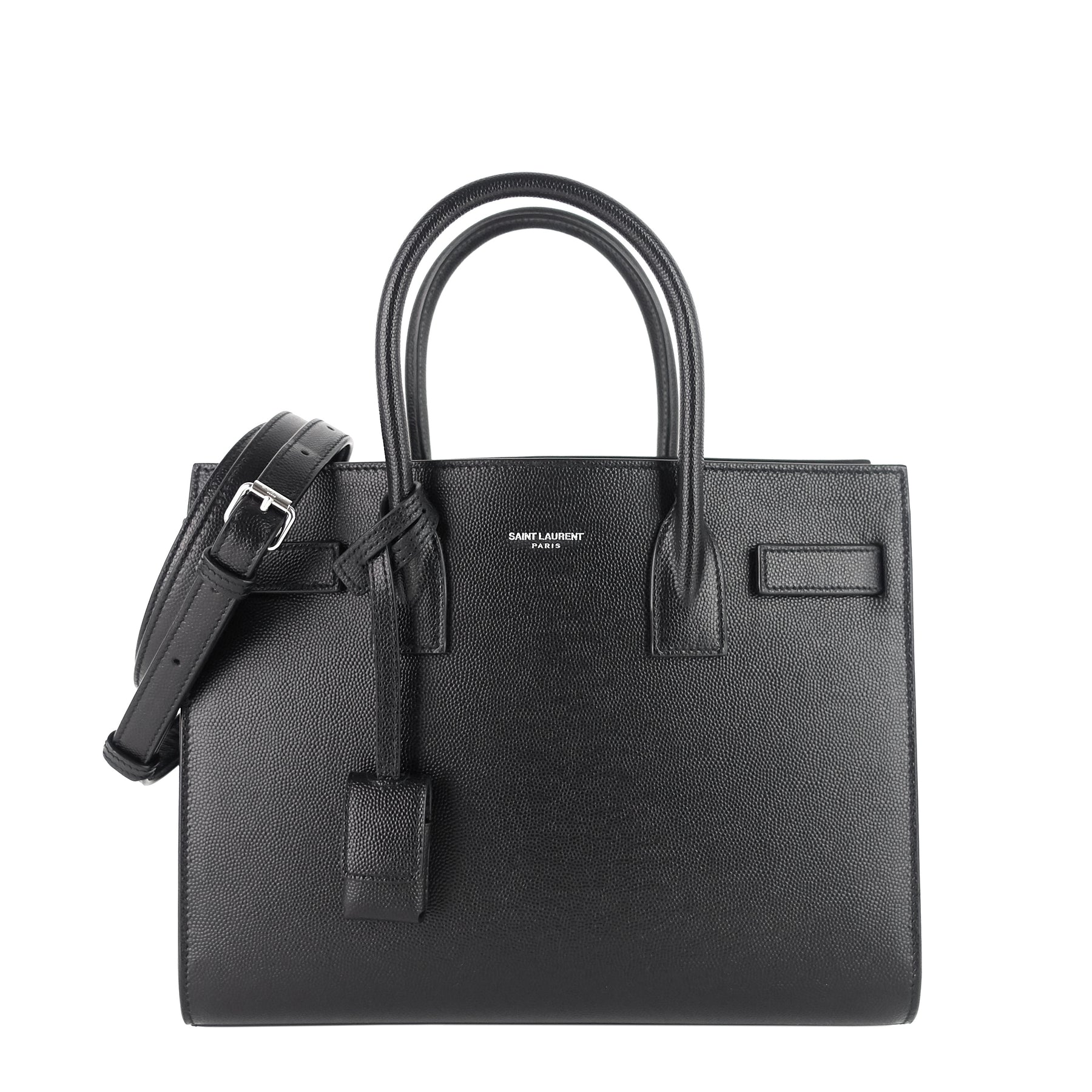 A structured tote in calfskin leather whose name literally translates to "bag of the day." Reminiscent of the Hermès Birkin (but appreciably less expensive), it features a boxy, accordion-style silhouette and compression straps that can be unfastened for a slightly more relaxed shape. Available in four sizes (nano, baby, small and large), the baby style offers just enough space for the daily essentials.