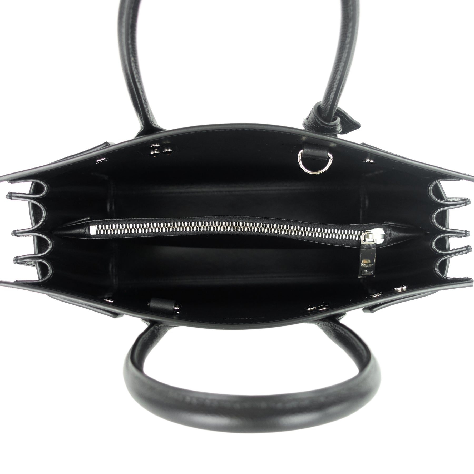 Handle/strap Rounded leather handles; detachable, adjustable leather strap