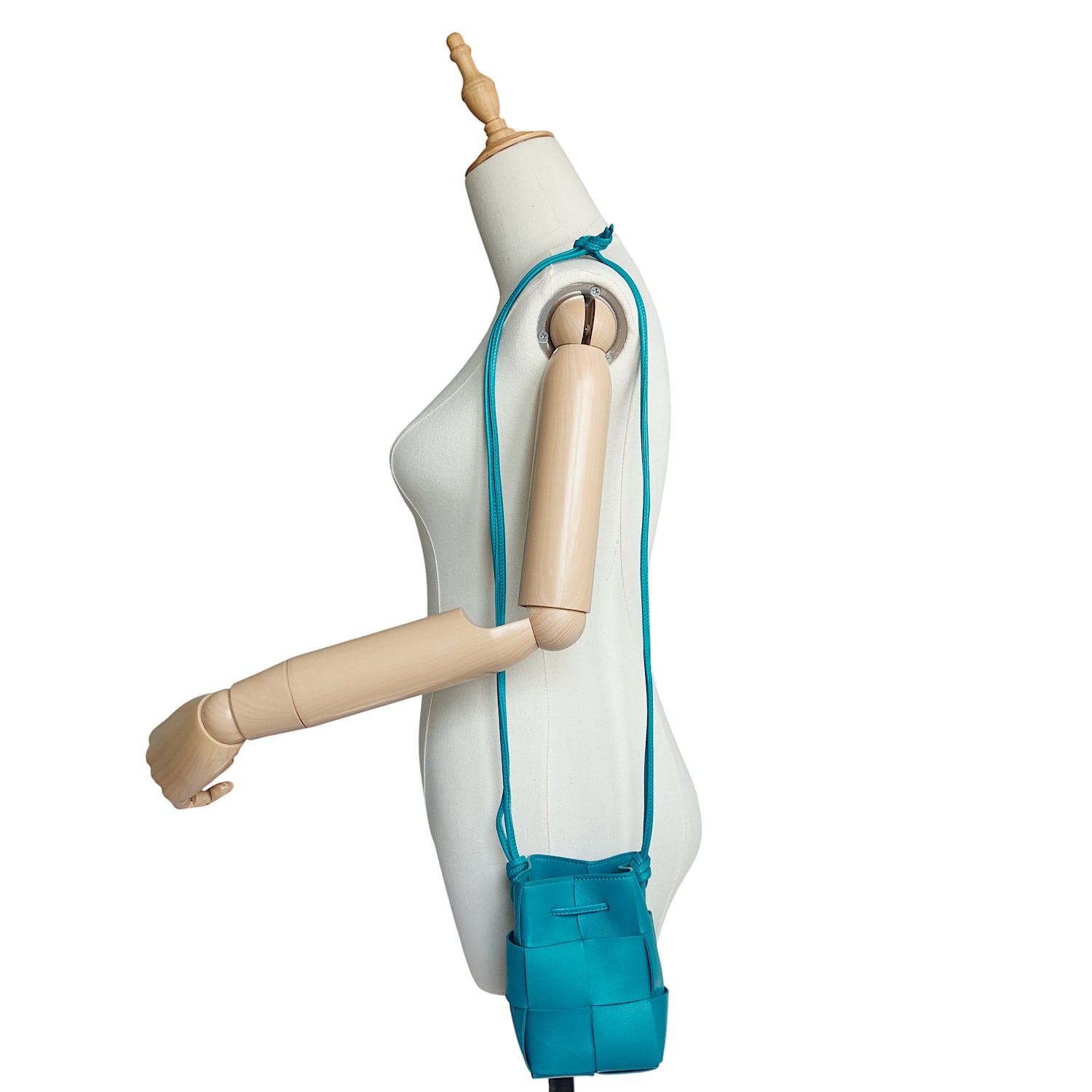 Crafted in Italy from handwoven strips of soft nappa leather, this compact bucket bag is topped with knotted straps for a bold look.