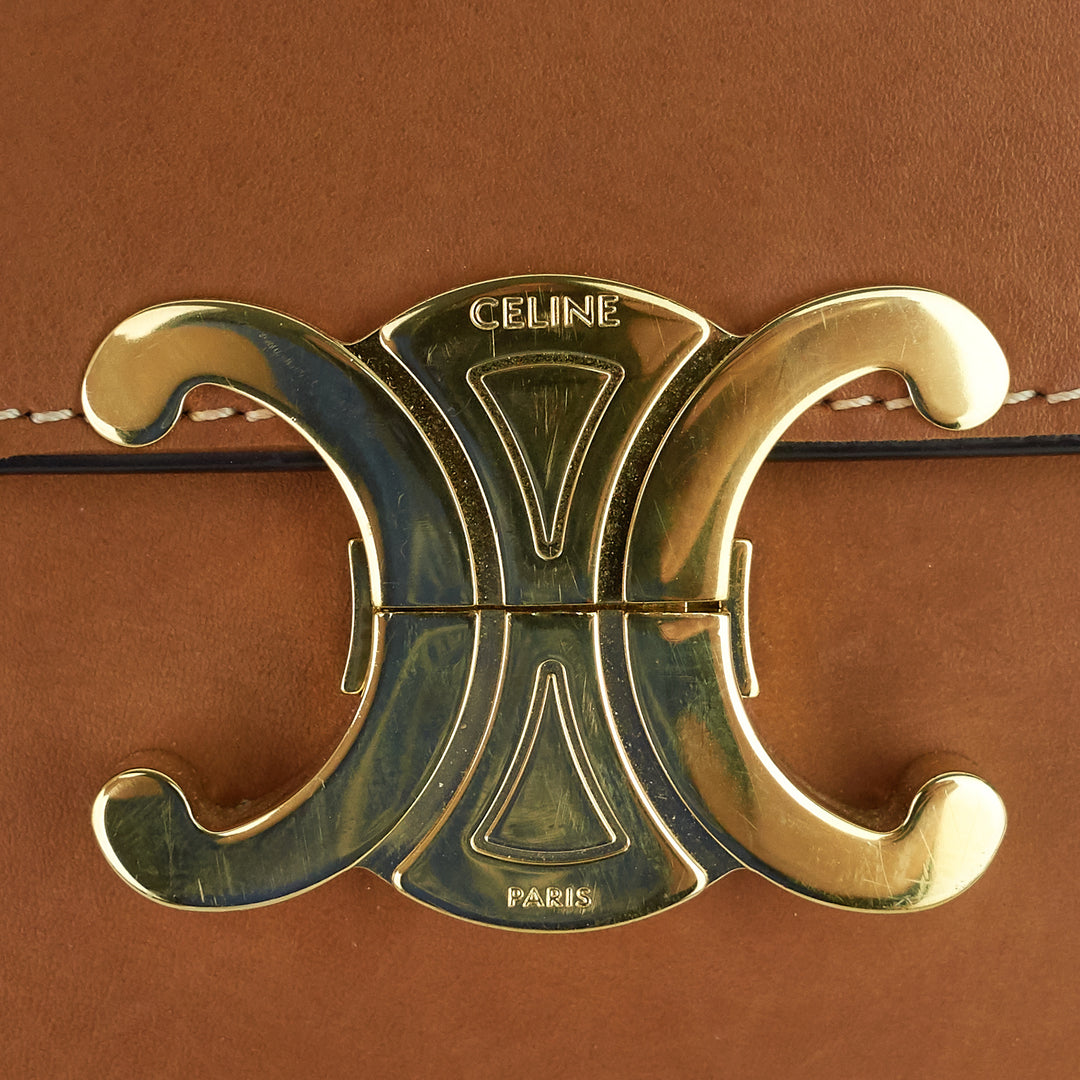 Triomphe hardware—an archival design dating back to the '70s—adds a dash of retro flair to a structured shoulder bag designed with a trio of compartments and an adjustable crossbody strap.