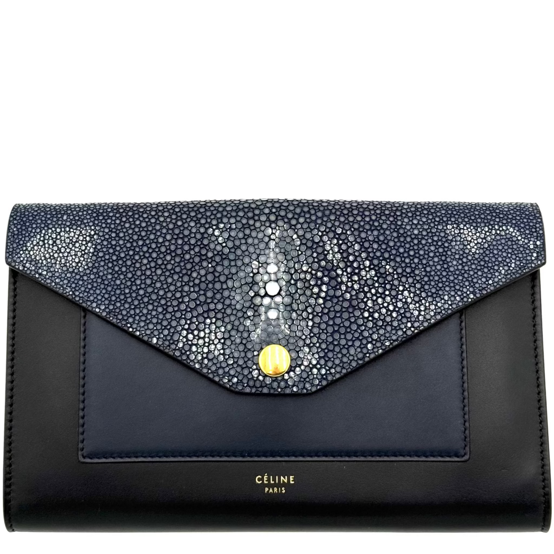 Stingray leather at the flap defines a sleek envelope clutch that's sure to be your go-to for elegant evenings out.