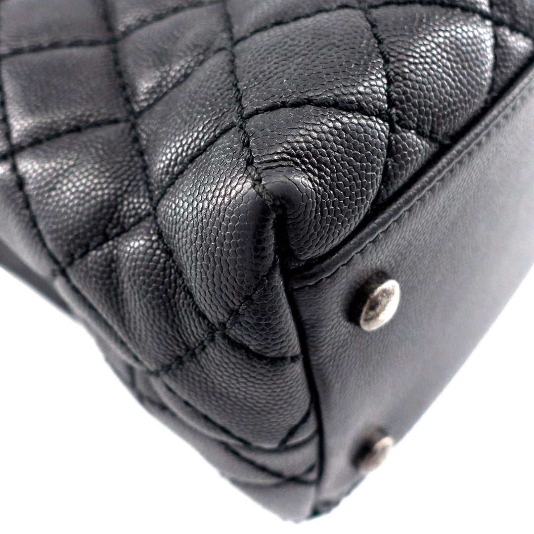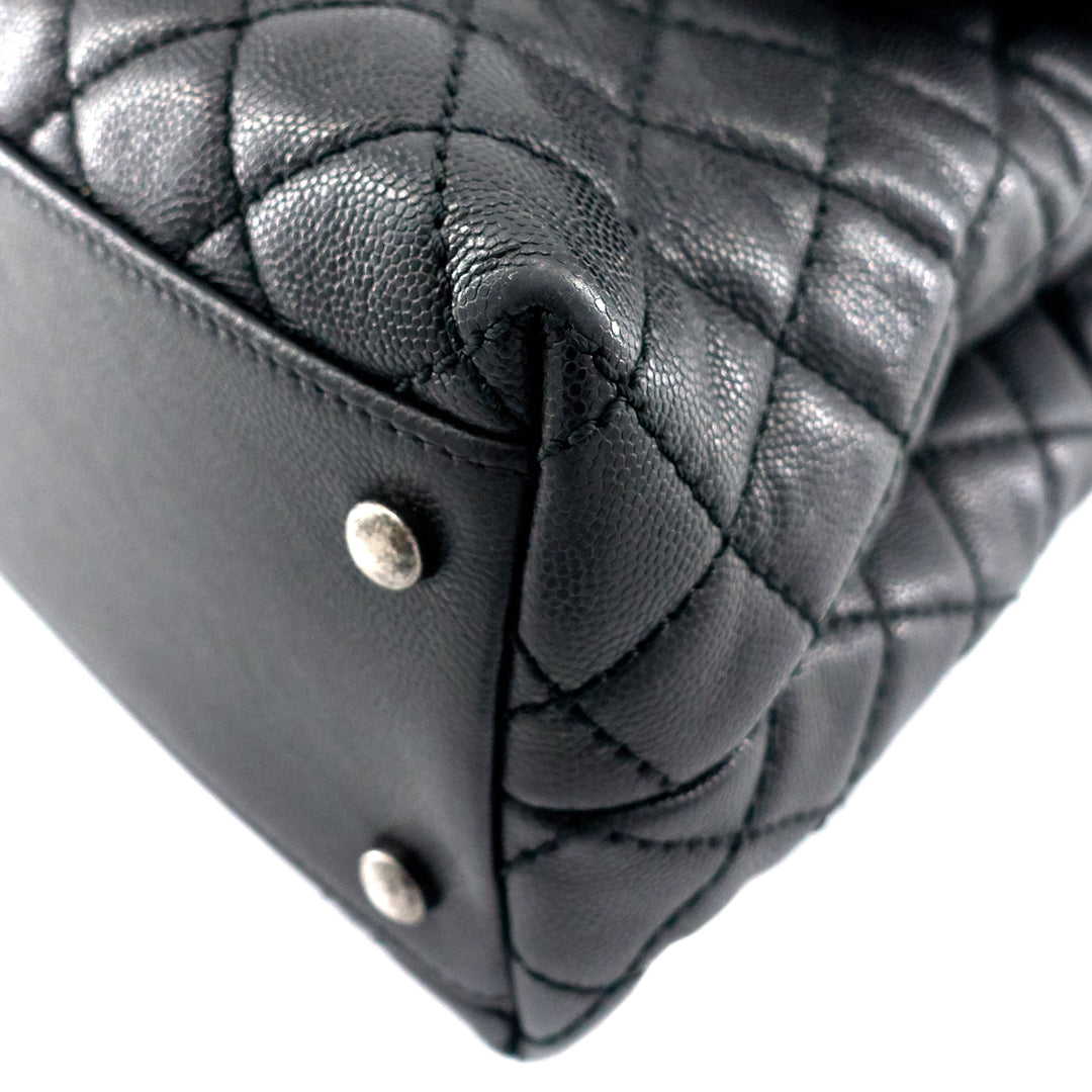 Overall: The outer leather is mostly spotless, with just a few minor scratches on the body, scuff marks on the bottom corners, and a couple of light scratches on the handle. The interior lining is clean, with the only signs of wear being a few small stains to one of the two compartments and a few light scratches to the leather underside of the flap. The hardware is in excellent condition, showing no signs of wear except for some faint scratching on the tips of the bottom studs.