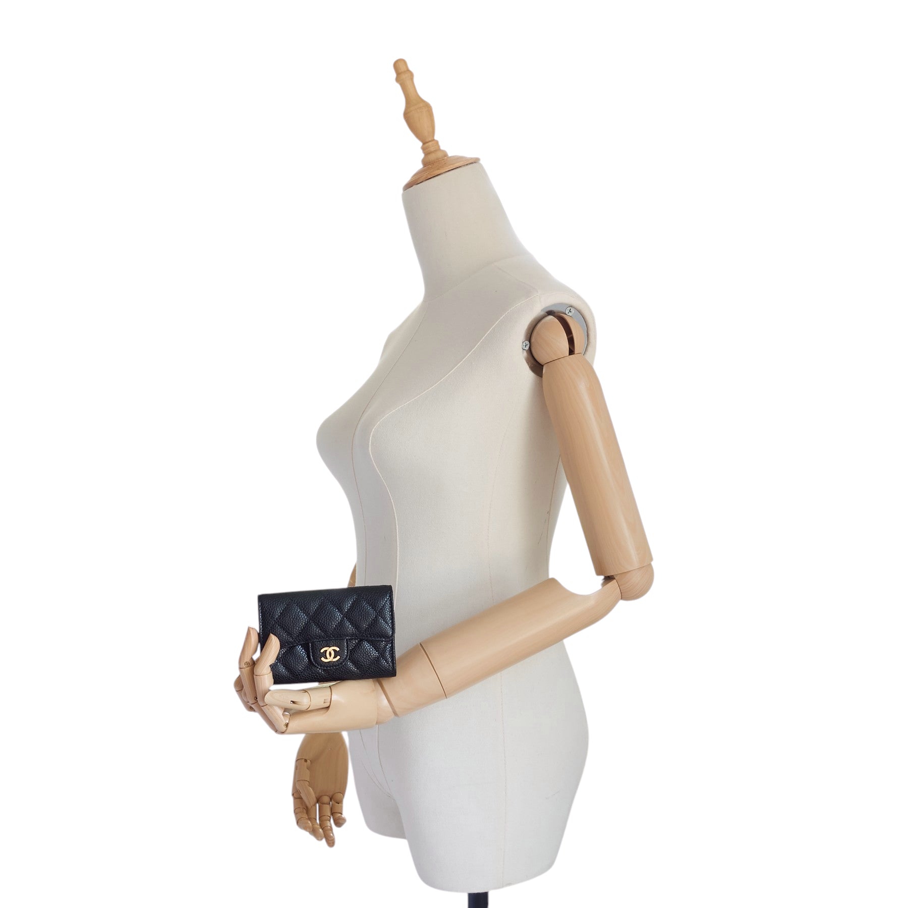 An interlocking C logo sits front and centre on a sleek card case made from diamond-quilted cavair leather.