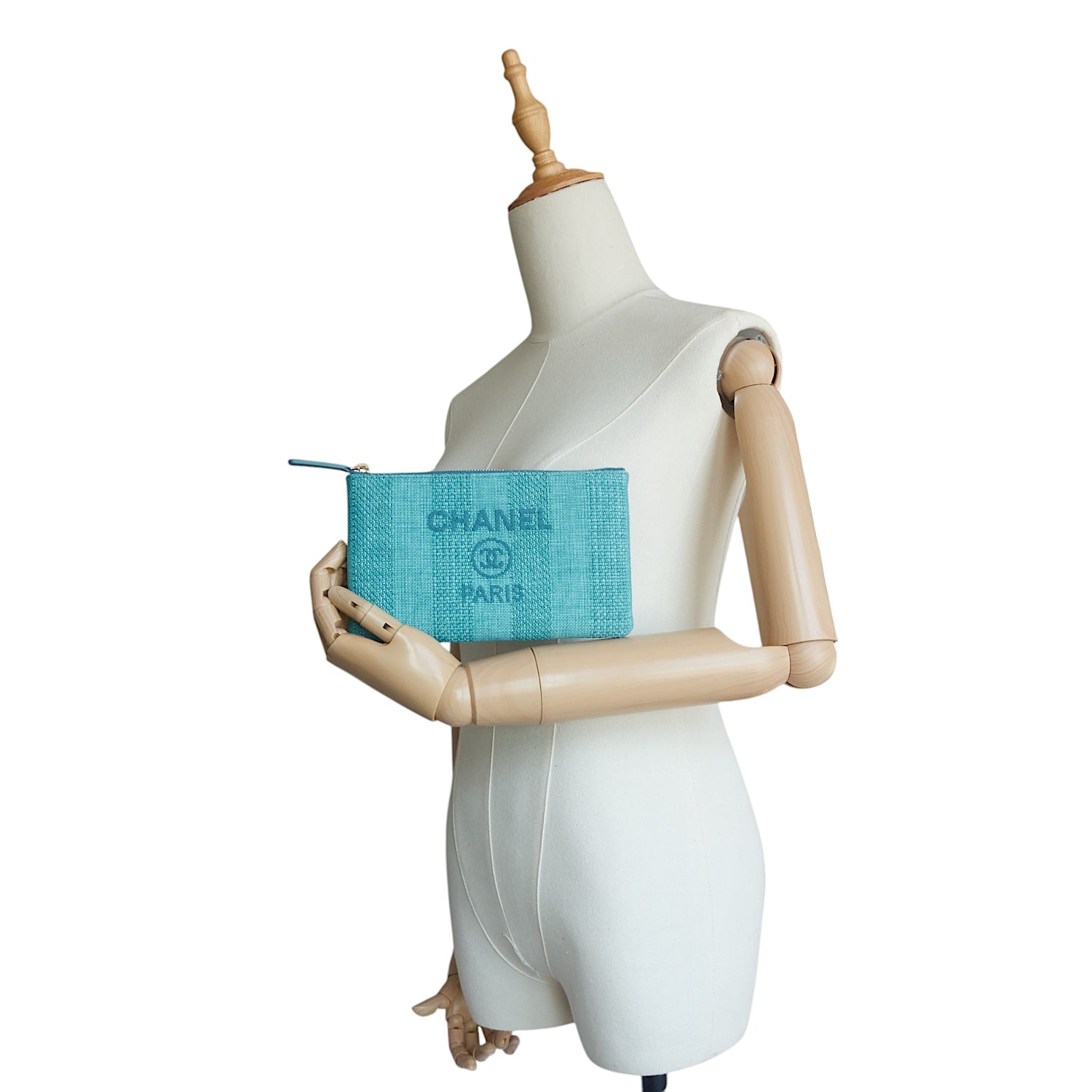Woven from natural raffia, this slim zip pouch pairs well with a larger bag or works well on its own as a clutch.