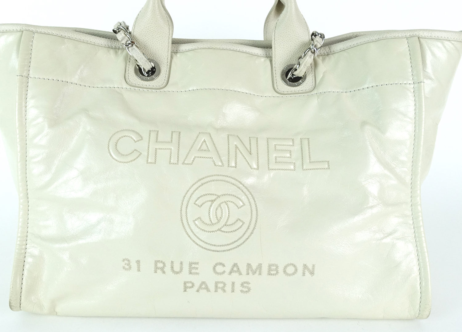 Deauville Glazed Calfskin Leather Large Tote Bag