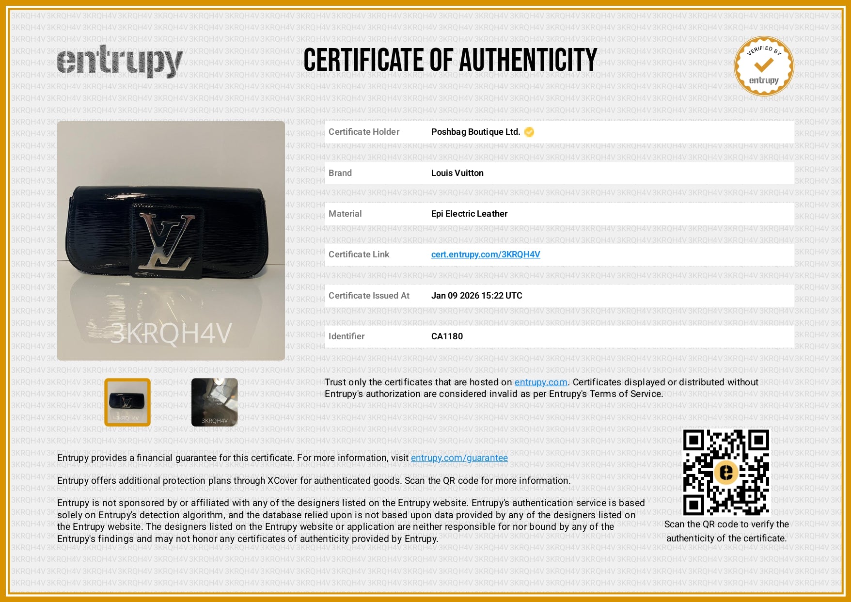 Oversized LV hardware sits front and centre on a structured clutch crafted from textured Epi leather in a deep, high-gloss black known as Black Electric.