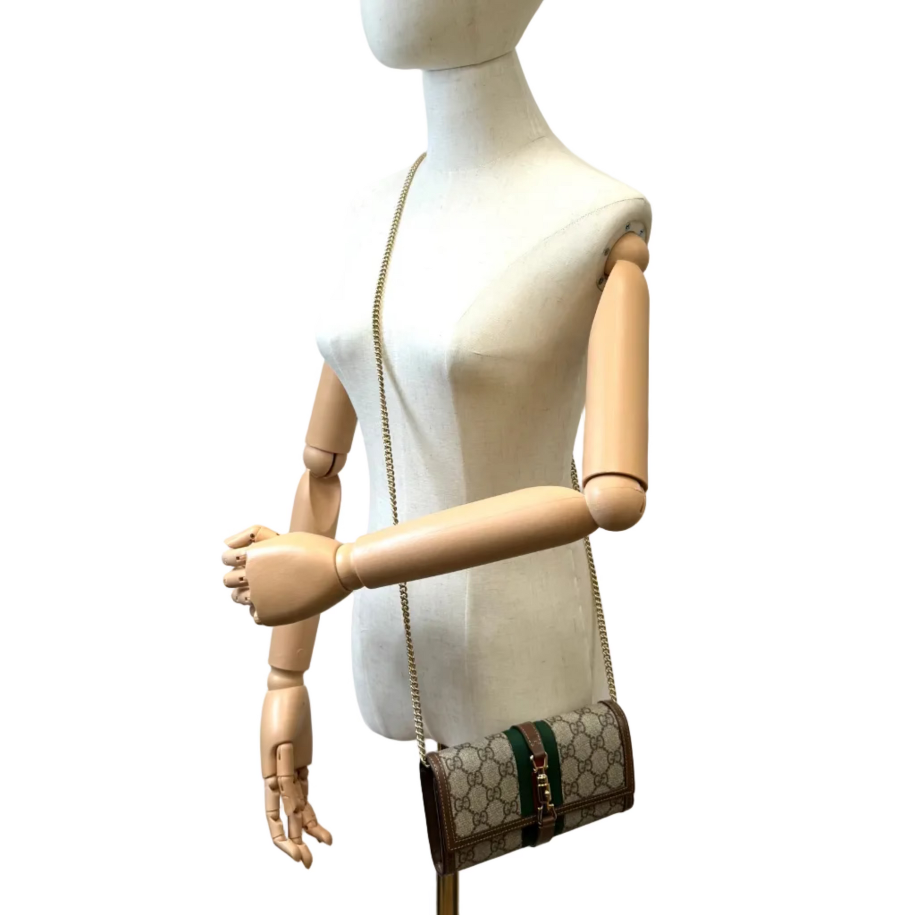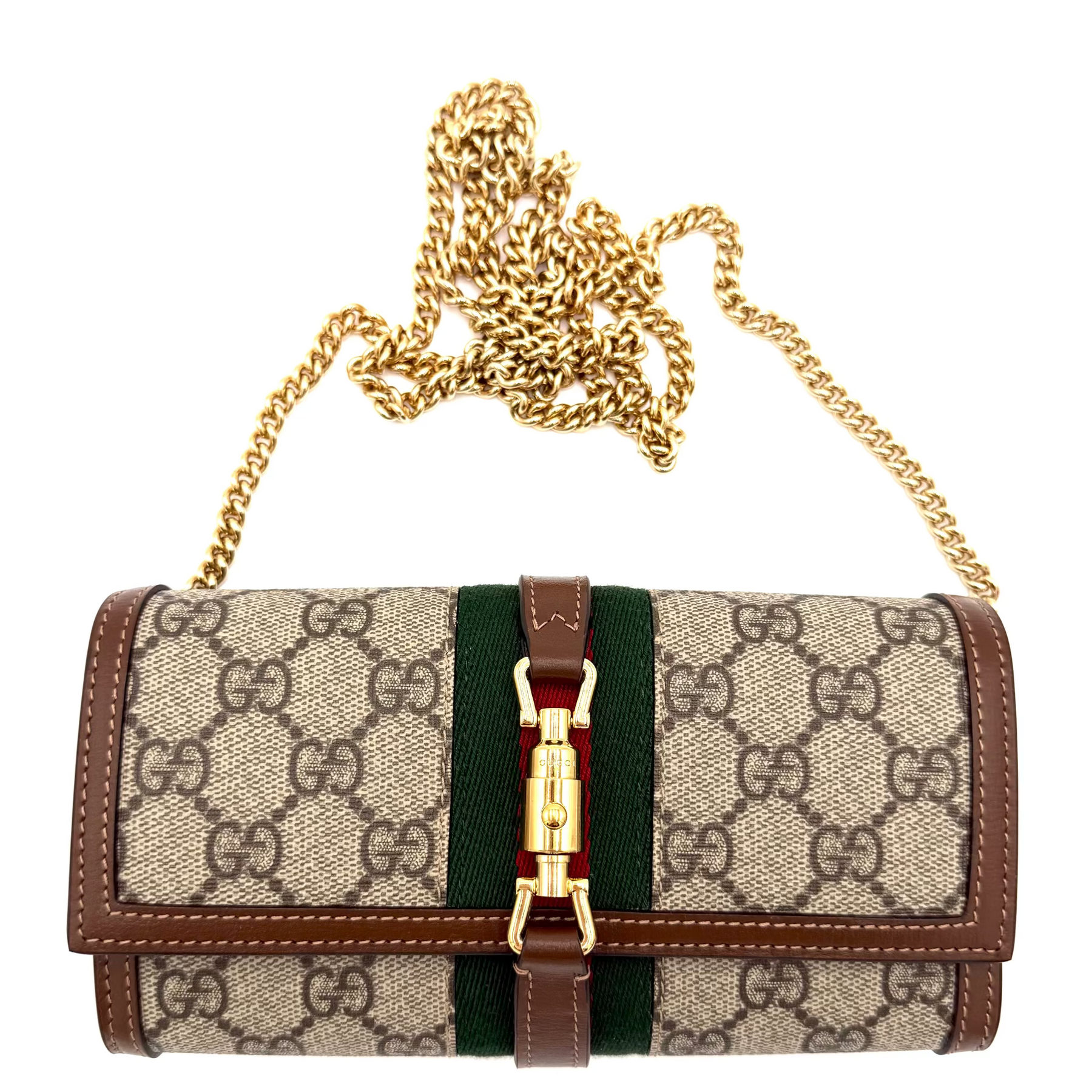 Gucci Jackie 1961 GG Supreme Wallet on Chain reinterprets a timeless icon with contemporary elegance. Crafted from GG Supreme canvas - Gucci’s signature coated canvas - and trimmed in smooth leather, this compact yet versatile design effortlessly transitions from day to night.