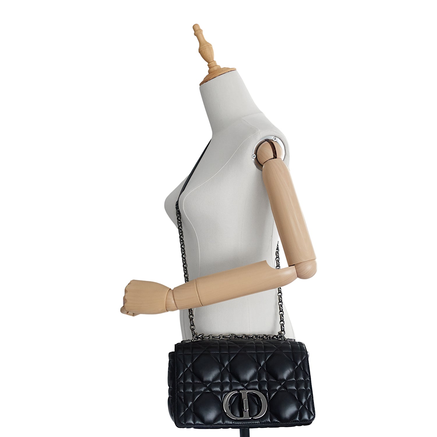 Crafted from supple calfskin leather, this structured shoulder bag is beautifully textured with meticulous macrocannage stitching. It is finished with a bold, chunky metal CD twist clasp and swings from a detachable chain strap with iconic CD links.