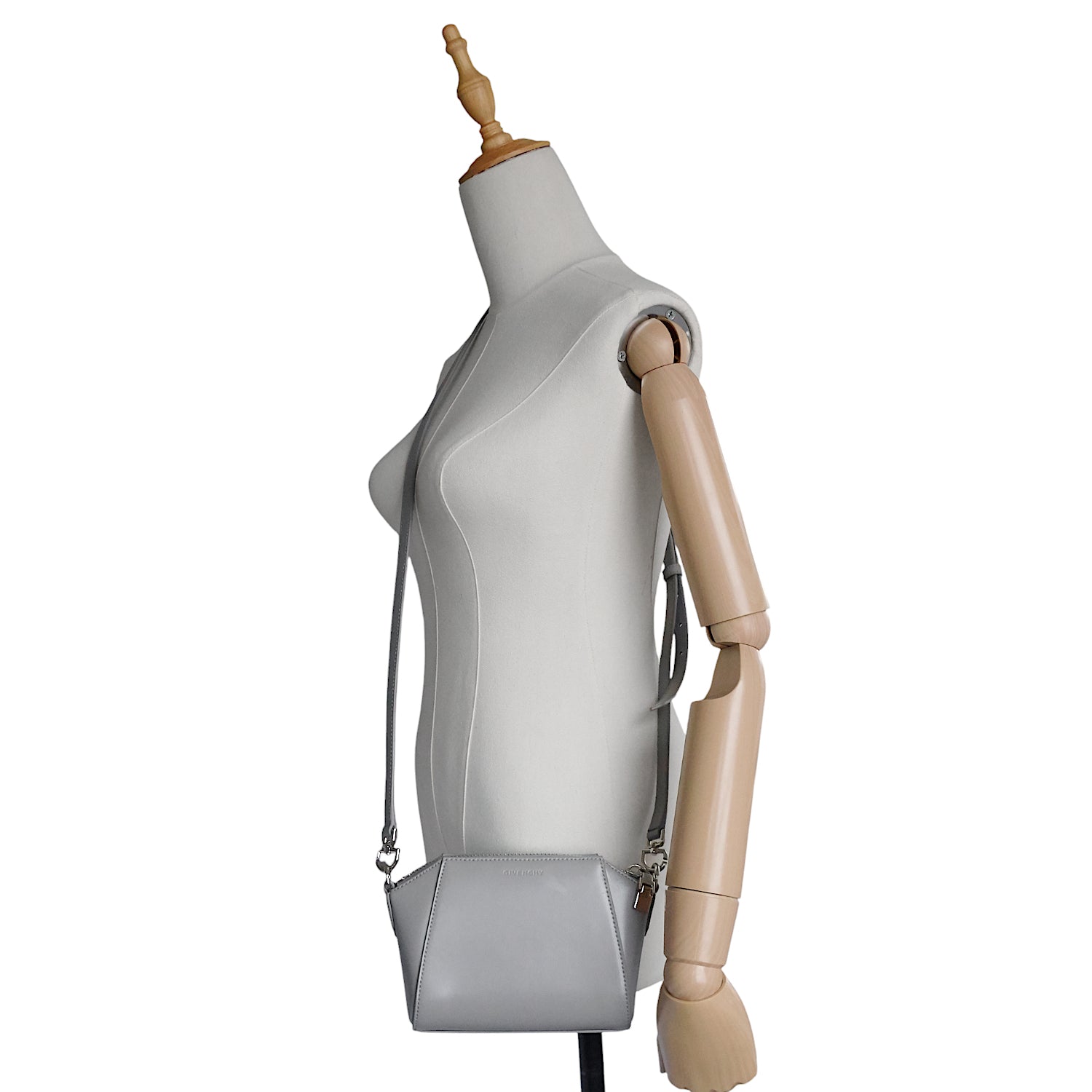 The ideal companion for elegant evenings out, this petite handbag in smooth calfskin leather belongs to the iconic Antigona collection. Its distinctive trapezoidal silhouette is paired with clean, minimalist logo lettering for a modern, understated look. Designed with both style and practicality in mind, it also features a sleek leather shoulder strap, allowing for effortless hands-free wear from dusk to night.