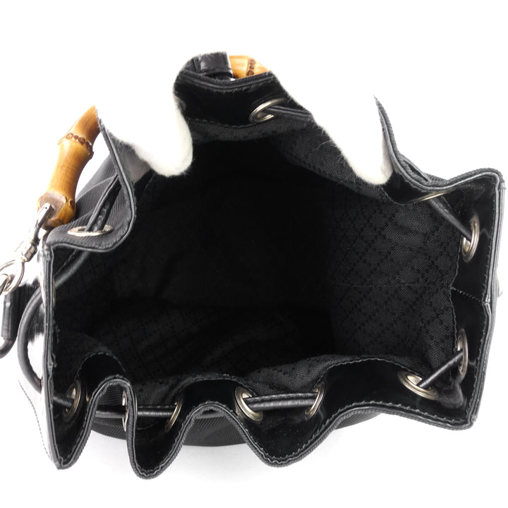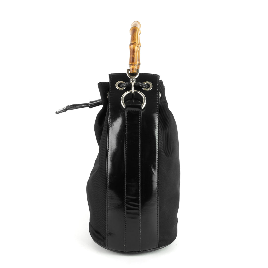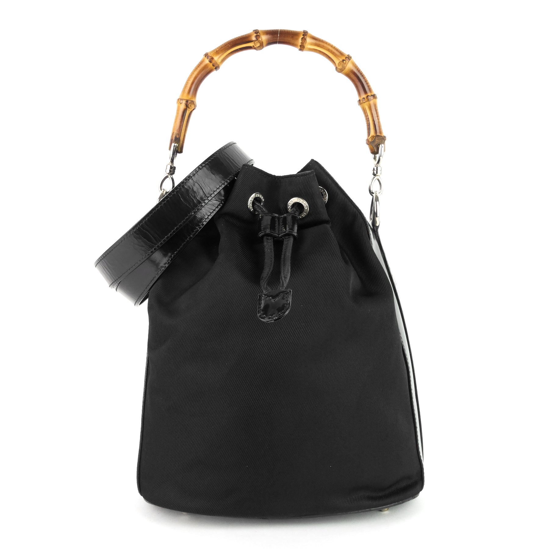 Nylon Bamboo Handle Drawstring Bucket Bag