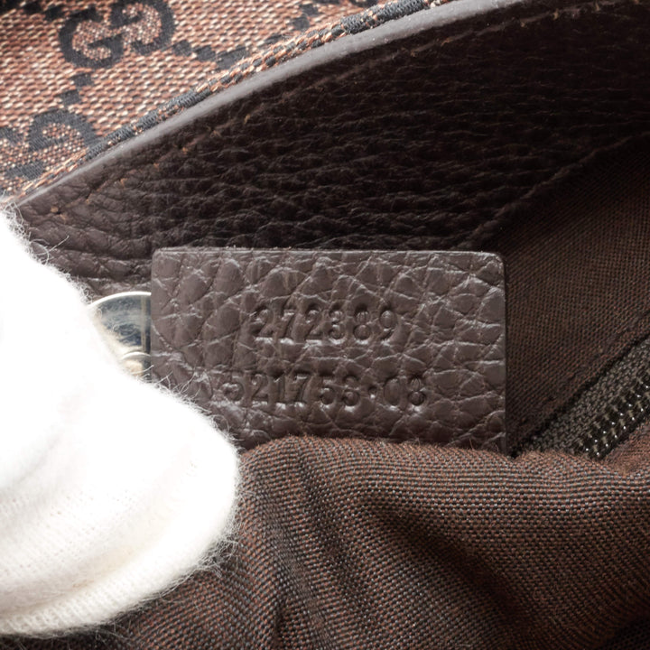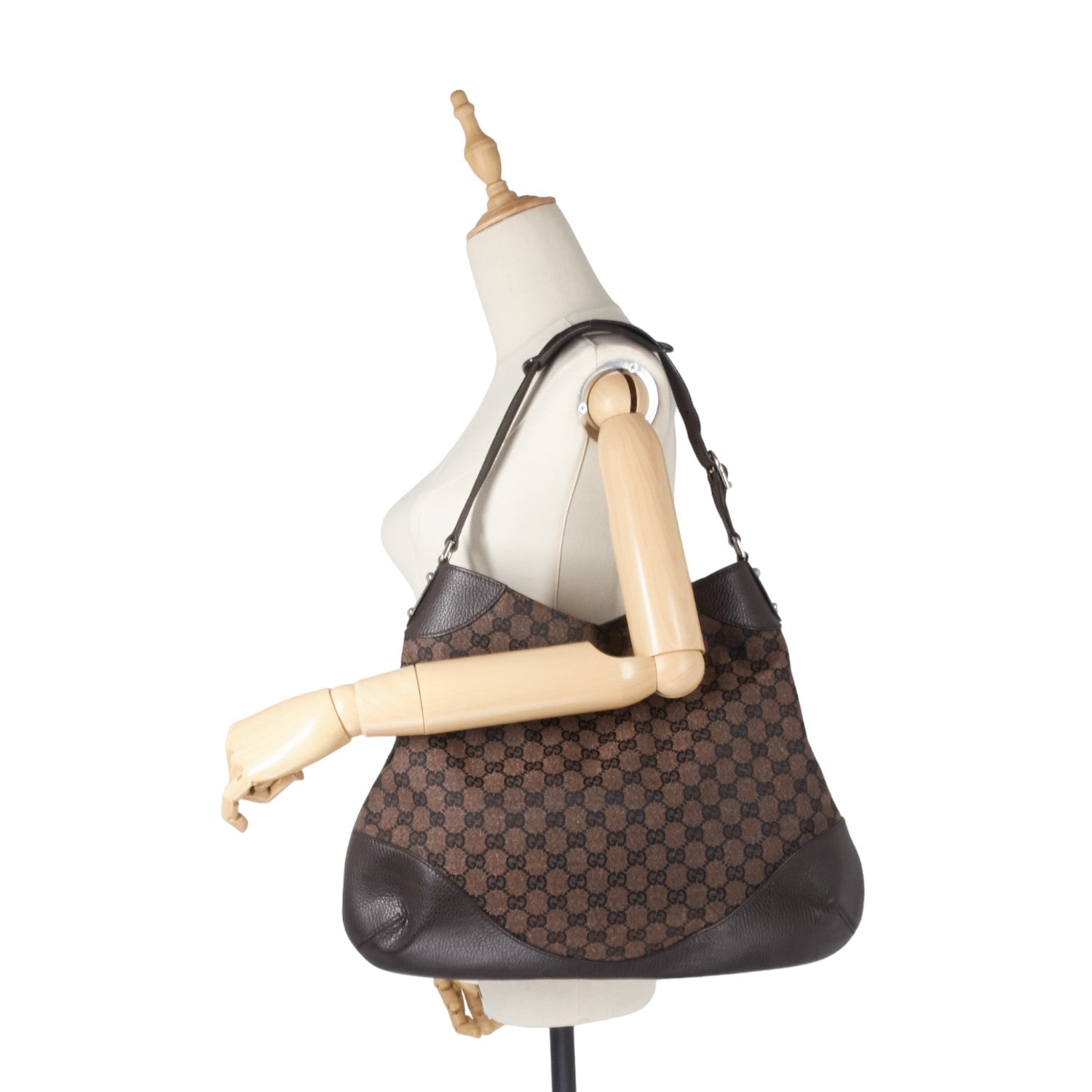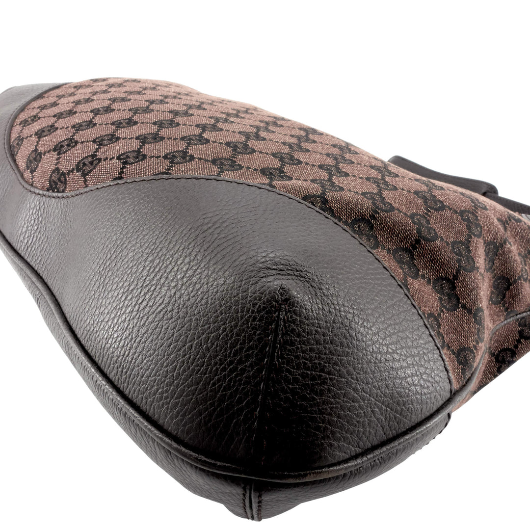 Crafted from brown logo-patterned canvas in a softly structured silhouette, this spacious hobo bag is accented with richly grained leather for extra support and topped with an adjustable strap.