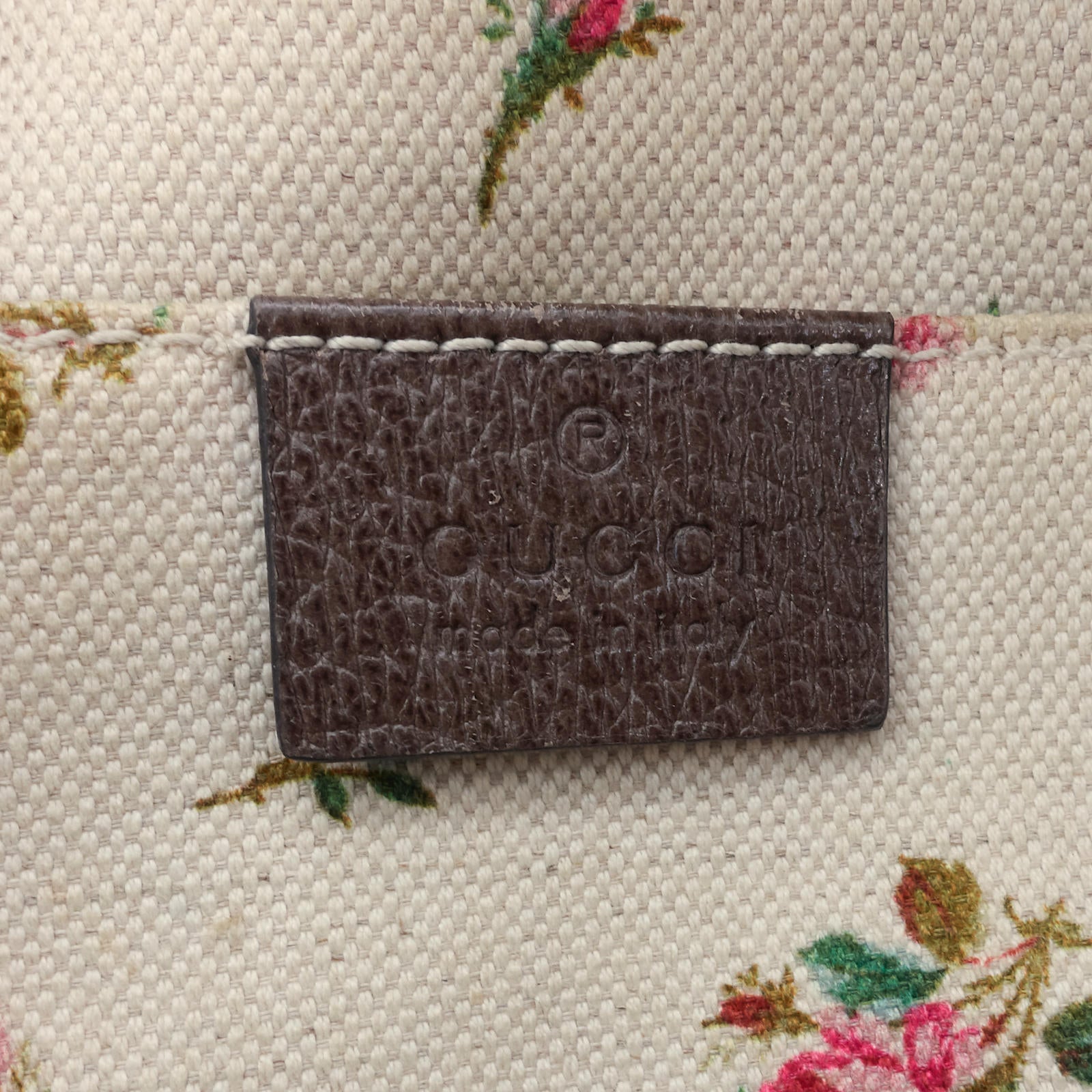 Archival House codes lend heritage style to an vintage-inspired camera bag featuring a green-and-red Web strap, an oval leather tag with a miniature feline detail, and a floral-patterned cotton linen lining.