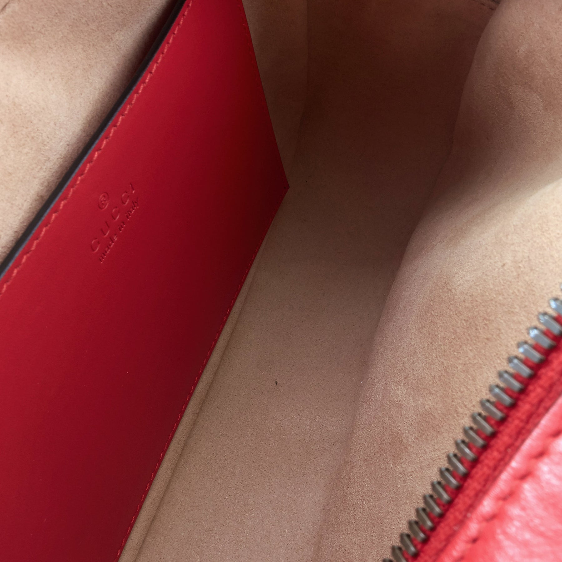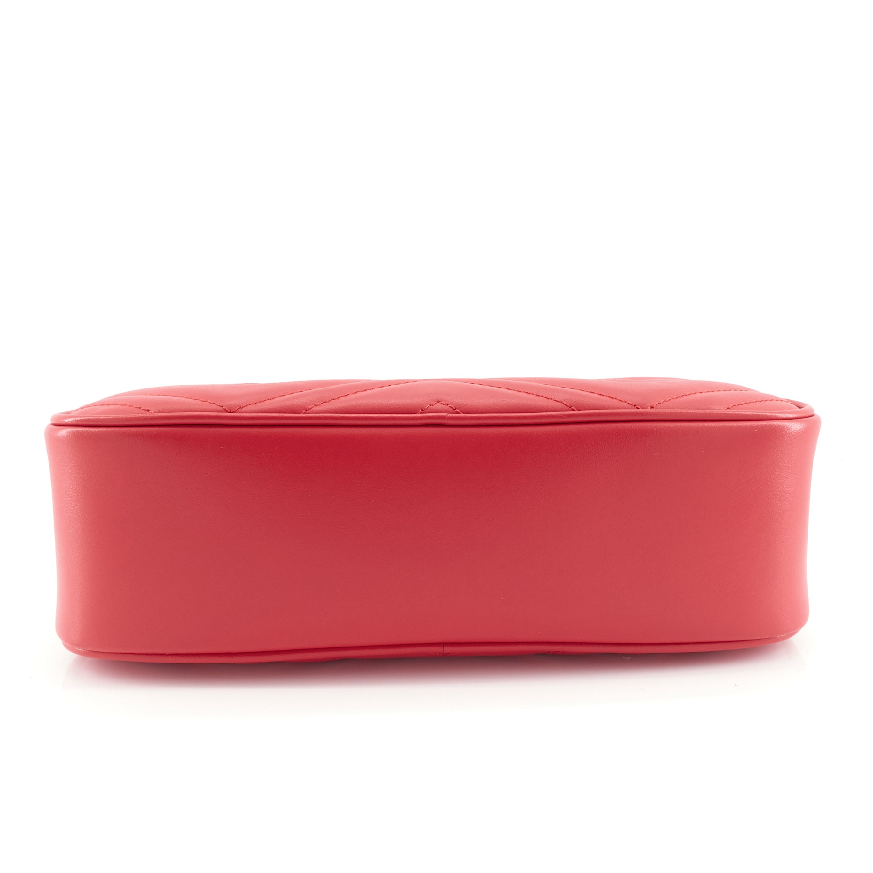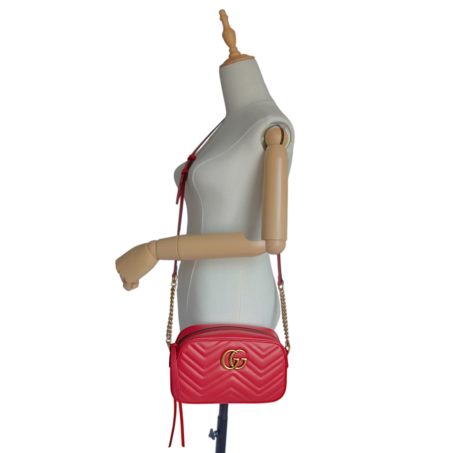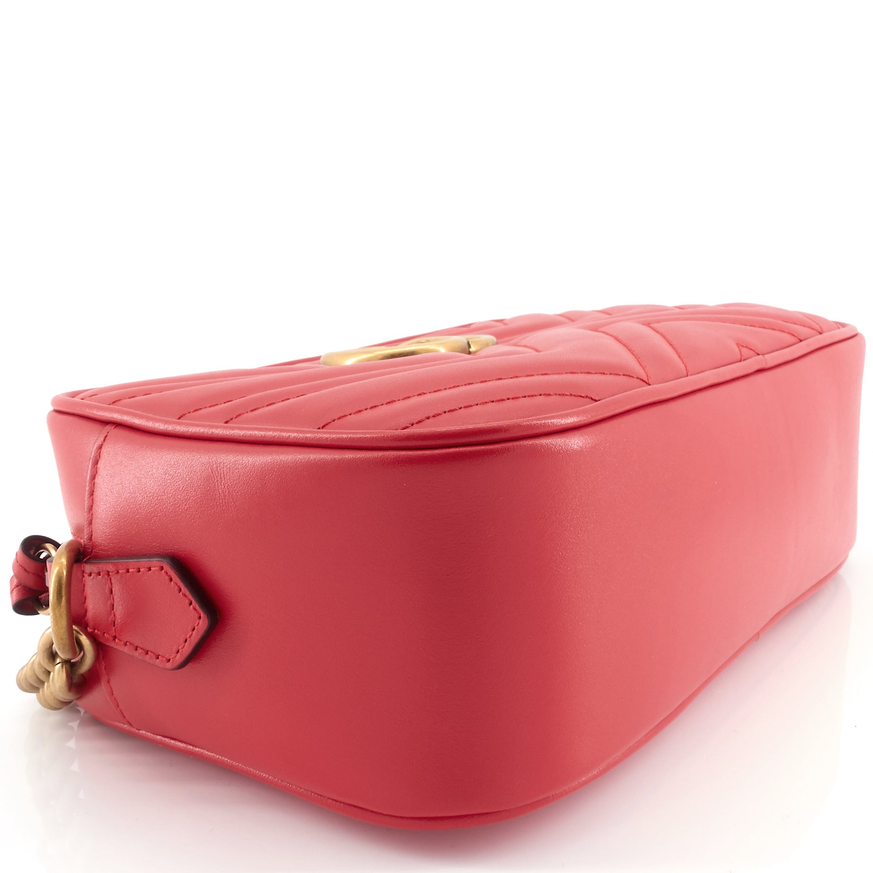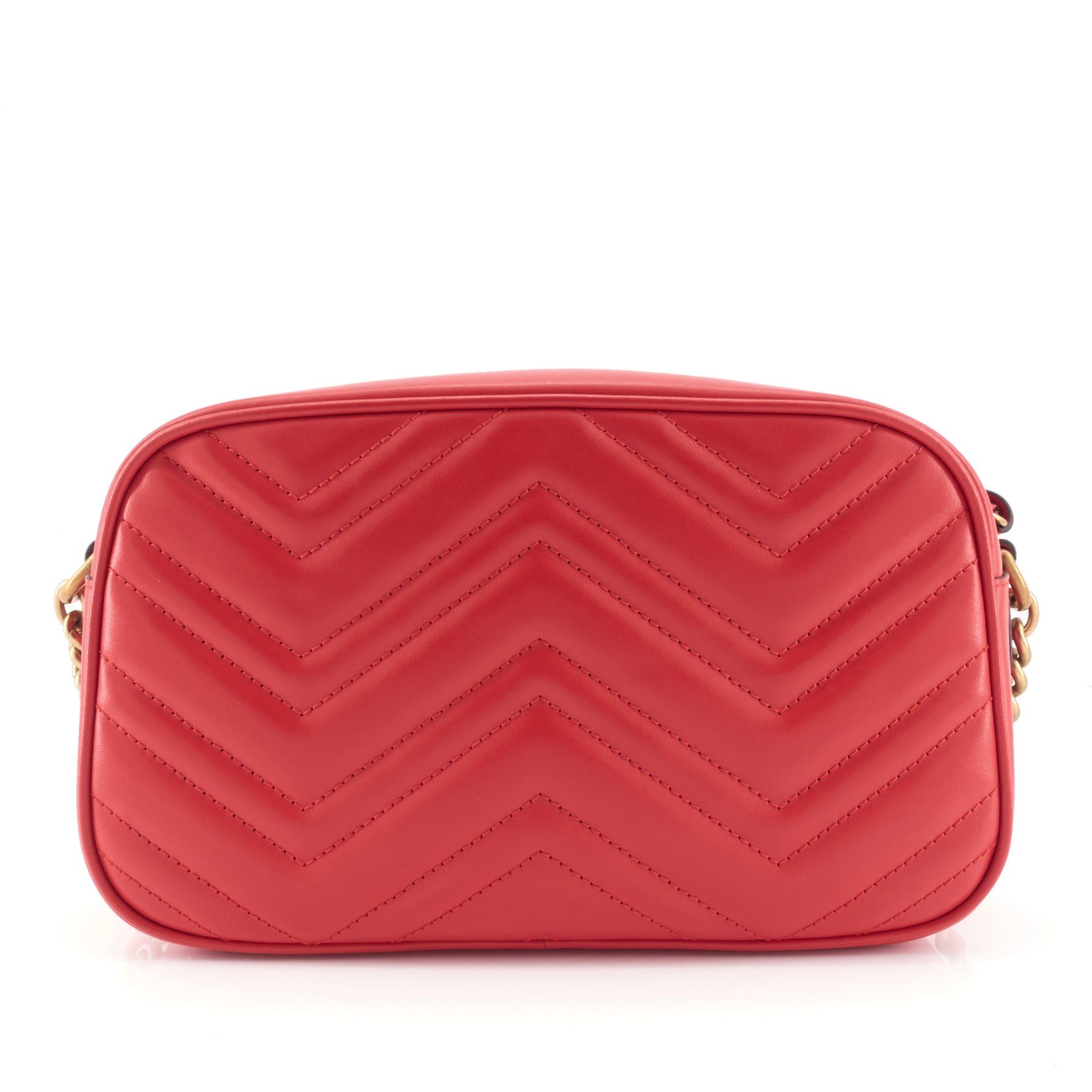 Gucci's iconic double-G logo—an archival design from the '70s—lends retro-chic appeal to a leather crossbody detailed with chevron quilting. The interior fits the smallest essentials and features a microfiber lining with a soft, suede-like finish, while a lengthy chain-and-leather strap can be slung across the body for easy, hands-free wear.