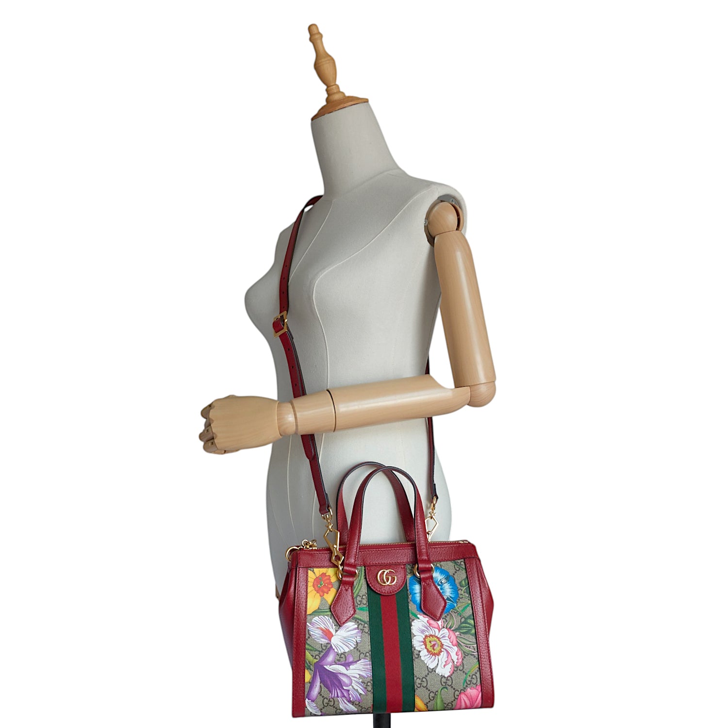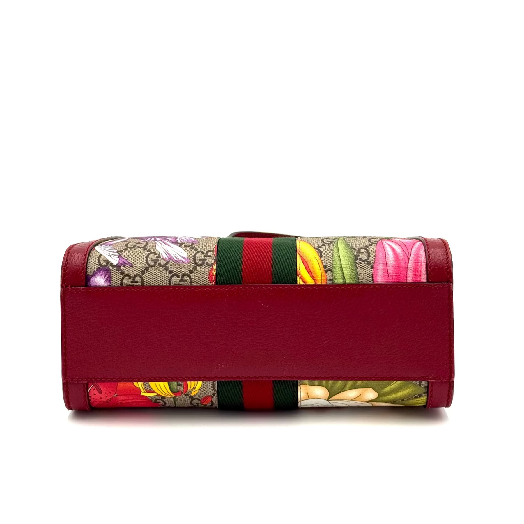 Crafted from GG Supreme canvas with a hand-painted floral print, this structured bag is trimmed with colourful calfskin leather, accented with a green and red Web stripe, and finished with a '70s-era double-G house logo.