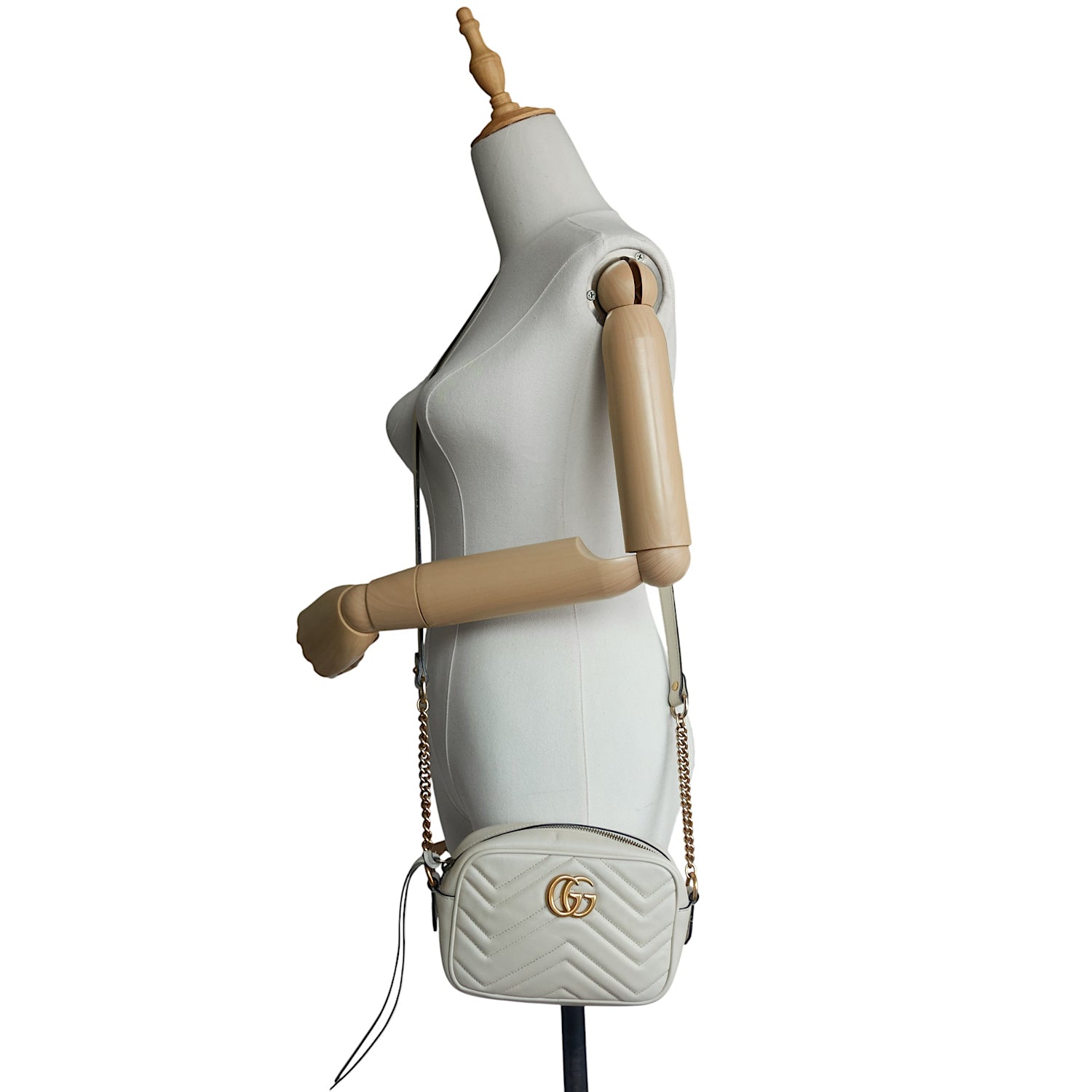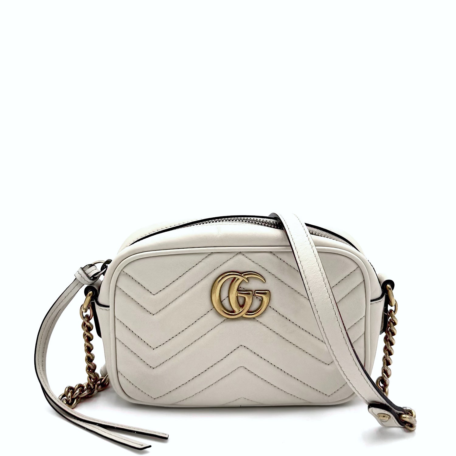 Gucci's iconic double-G logo—an archival design from the '70s—lends retro-chic appeal to a leather crossbody detailed with chevron quilting. The interior fits the smallest essentials and features a microfibre lining with a soft, suede-like finish, while a lengthy strap can be slung across the body for easy, hands-free wear.