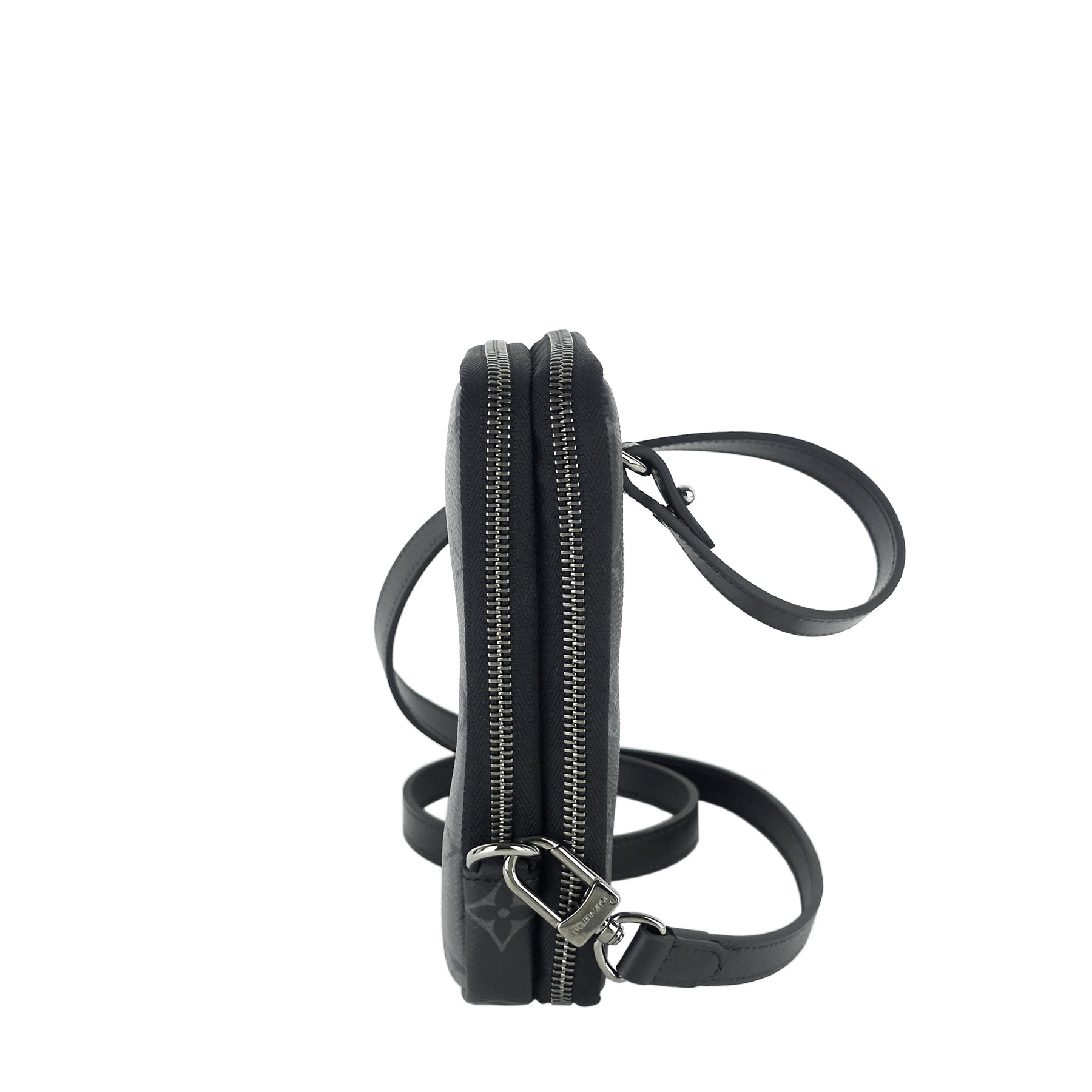 Wherever you're traveling, this zip-around bag made from Monogram Eclipse canvas and Monogram Eclipse Reverse canvas features a dual-compartment design to keep your smartphones, credit cards and other small personal items neatly organized. It can be carried by hand as a clutch, worn across the body or over the shoulder with an optional strap, or even secured to your belt.