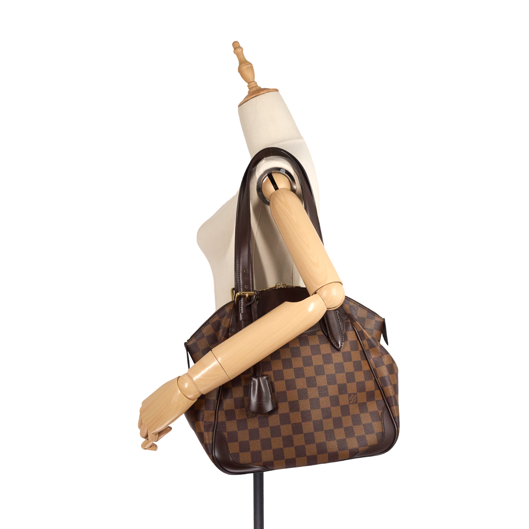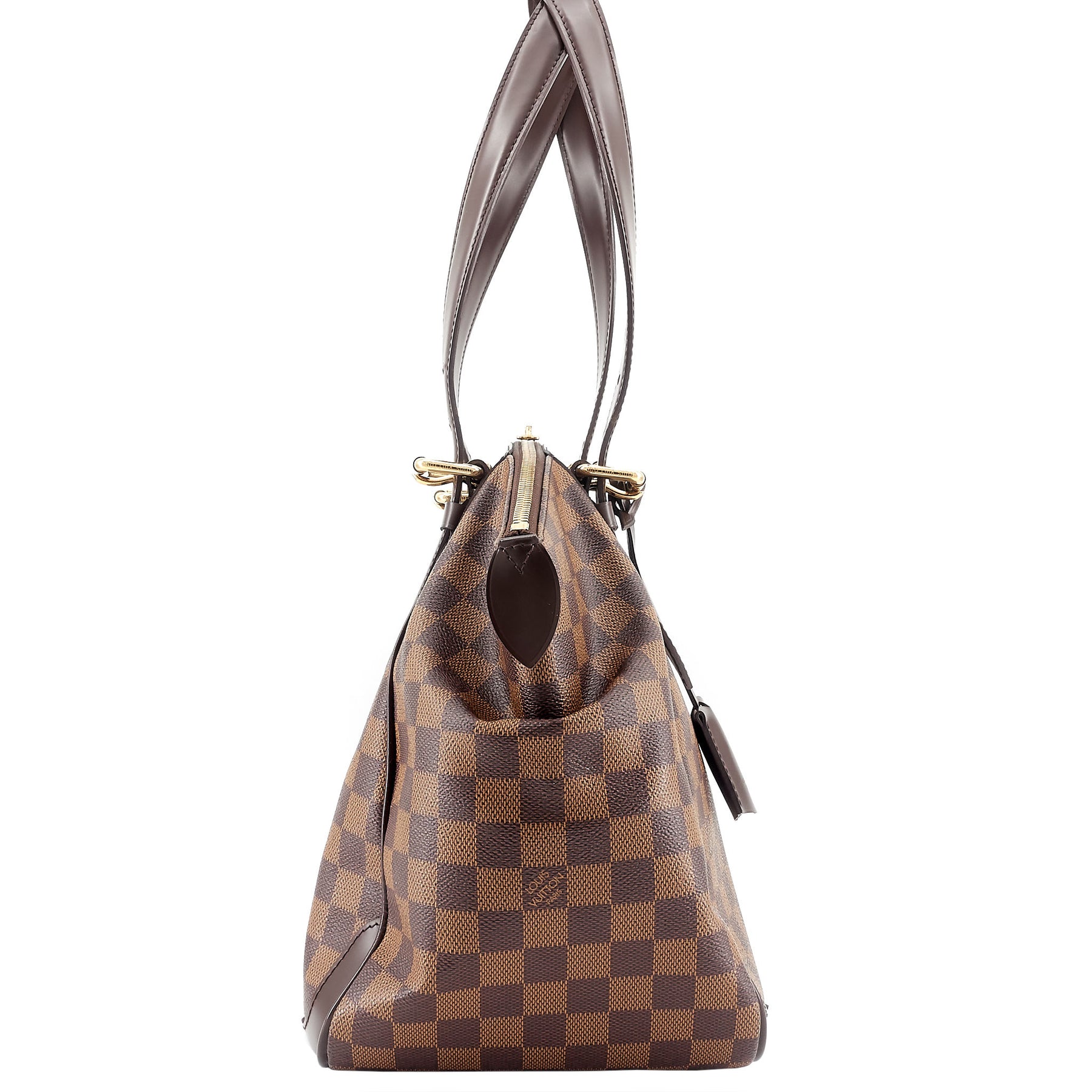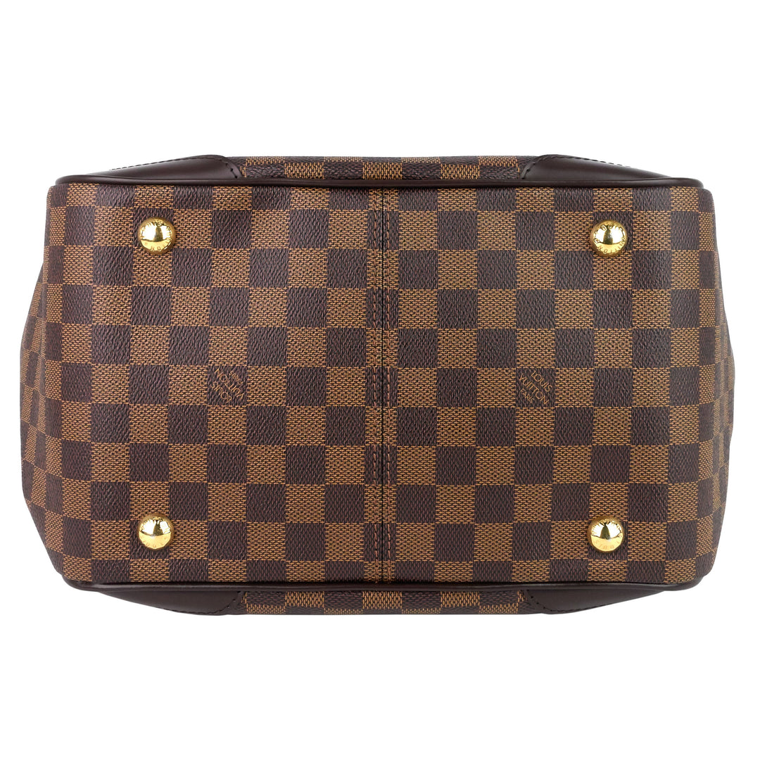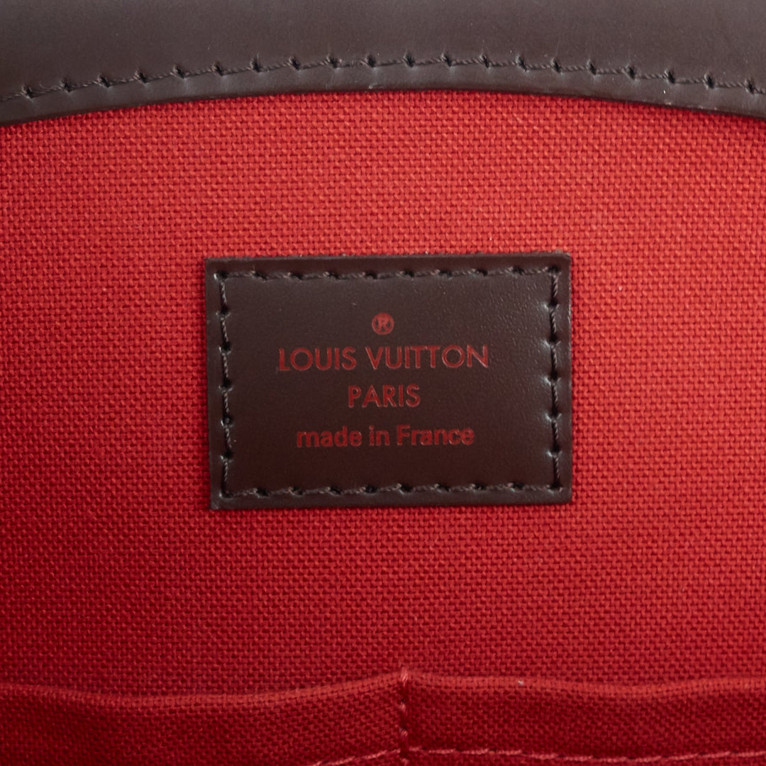 This chic bag crafted in a structured silhouette from Damier Ebene coated canvas with vegetable-tanned cowhide leather trim features adjustable straps, flat base that helps keep it from tipping over when it's set down, and a spacious interior perfect for storing your daily essentials.