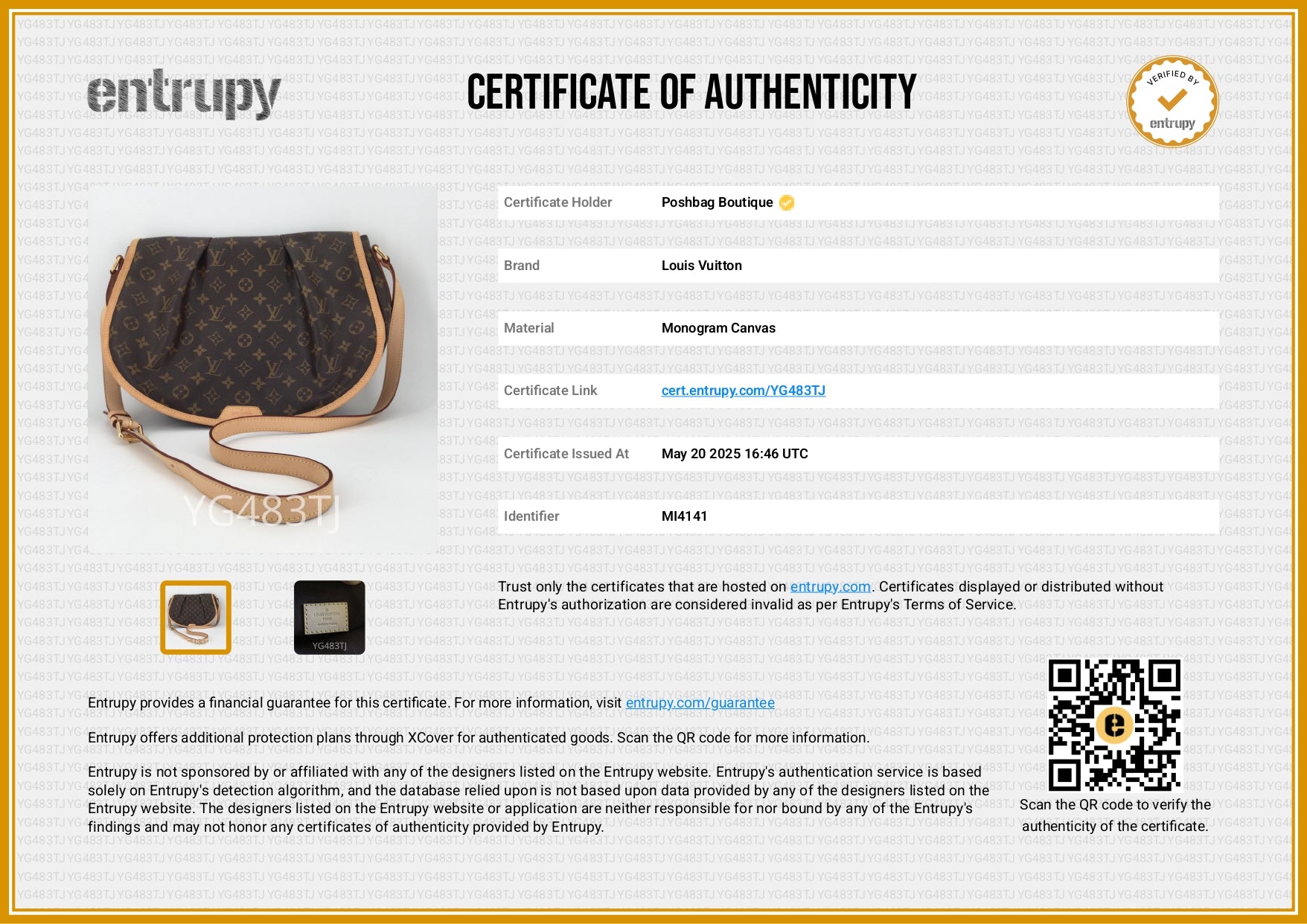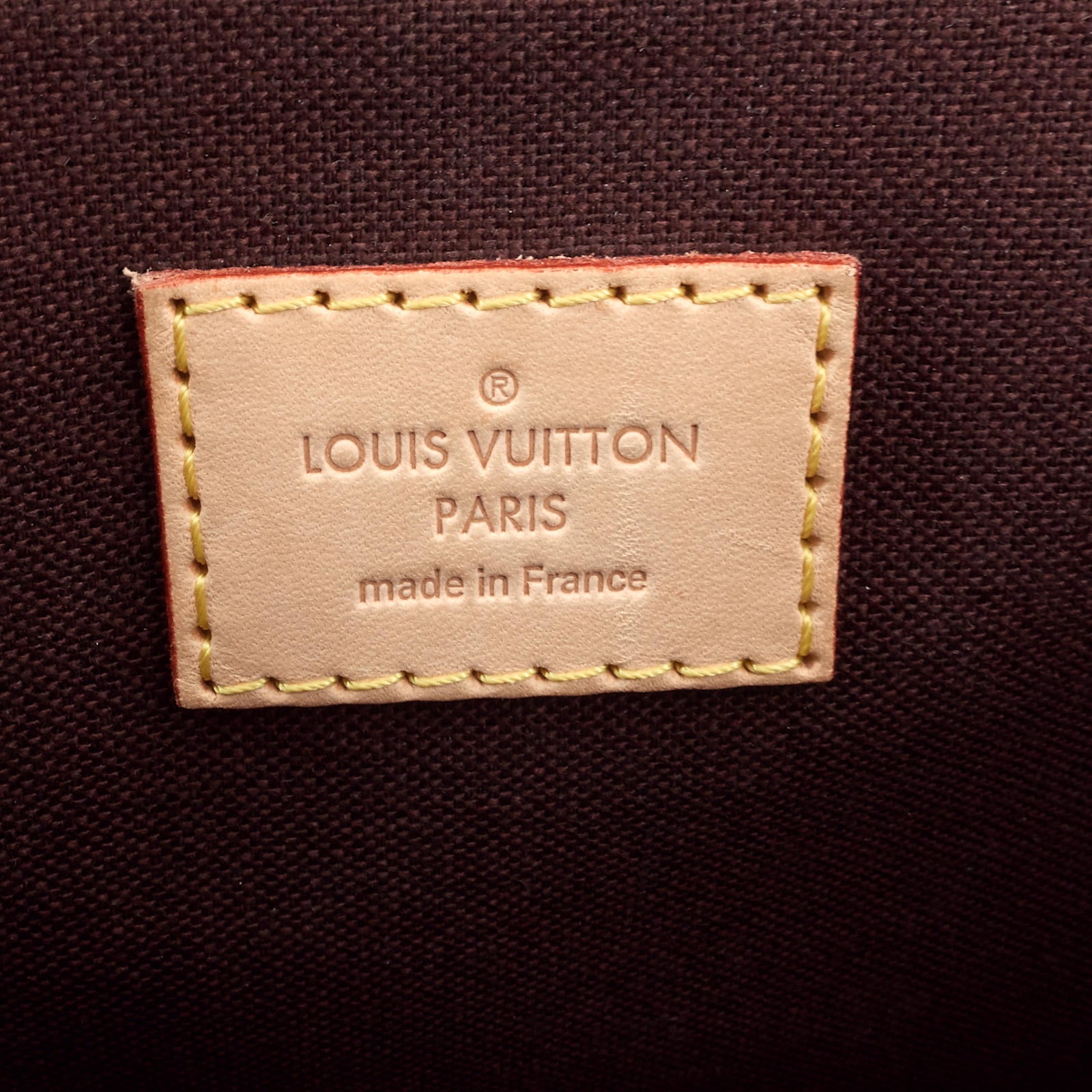 Overall: There’s no visible wear on the exterior monogram canvas or the interior fabric lining. The only signs of use are a developing patina on the cowhide leather trim and strap, along with a few small marks on the leather.