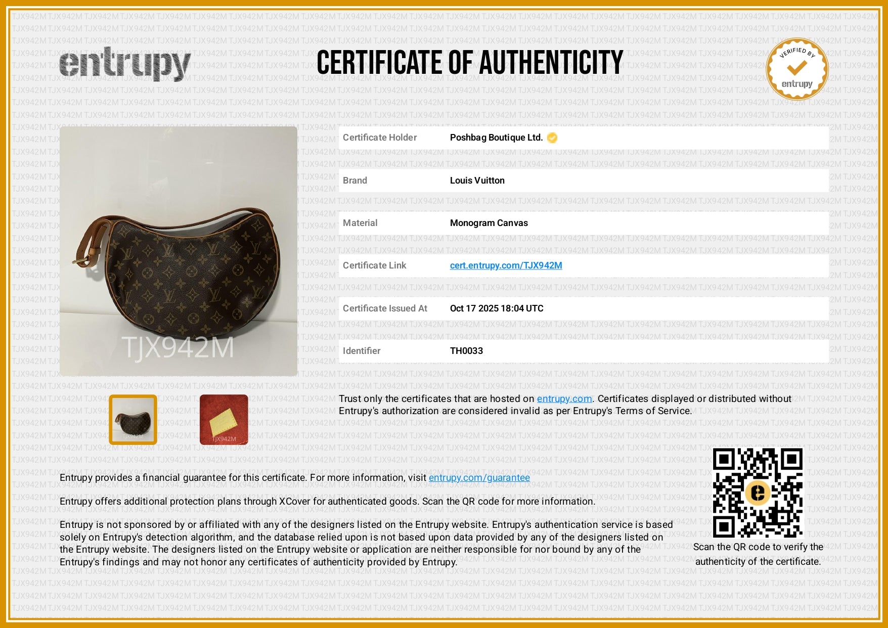 A timeless shoulder bag with a softly curved silhouette reminiscent of its namesake pastry. Crafted in iconic Monogram canvas with natural vachetta leather trim, it features a zip closure, fun red interior and adjustable strap for comfortable wear.