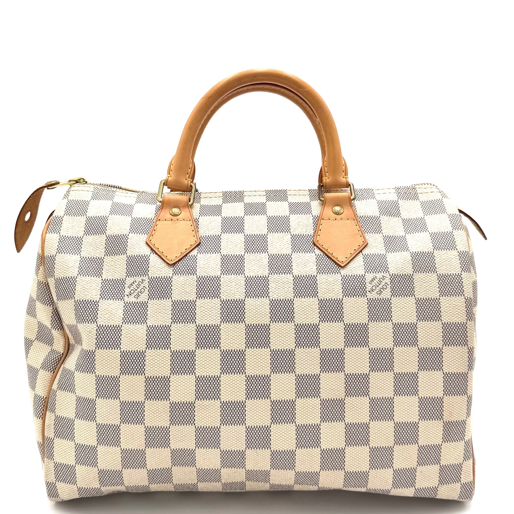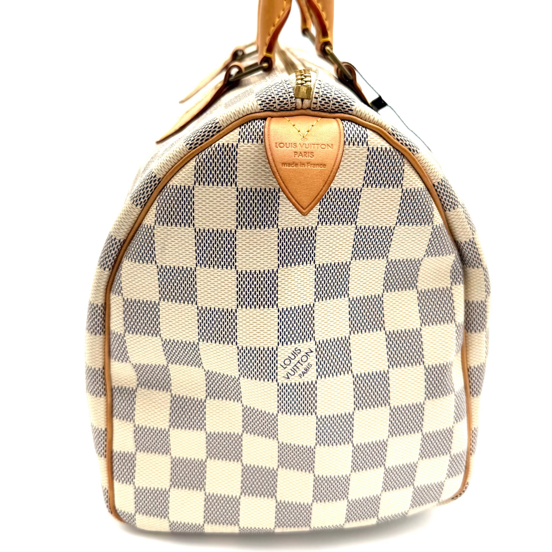 Timeless elegance meets everyday functionality with this authentic Louis Vuitton Speedy 30 in the fresh and feminine Damier Azur canvas. Introduced in the 1930s as Louis Vuitton’s first handbag, the Speedy was designed as a smaller version of the Keepall travel bag—crafted for life on the go. Famously carried by style icons like Audrey Hepburn, the Speedy has since become one of the most enduring and beloved bags in fashion history.