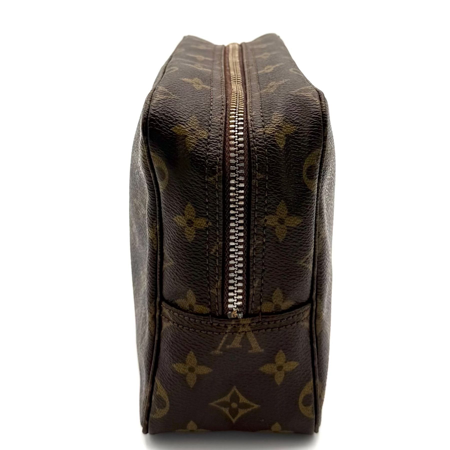 A timeless essential from the Louis Vuitton archives, the Vintage Trousse 28 captures classic French sophistication in its purest form. Crafted from the iconic Monogram coated canvas, this elegant toiletry pouch combines durability with understated luxury — designed to stand the test of time.