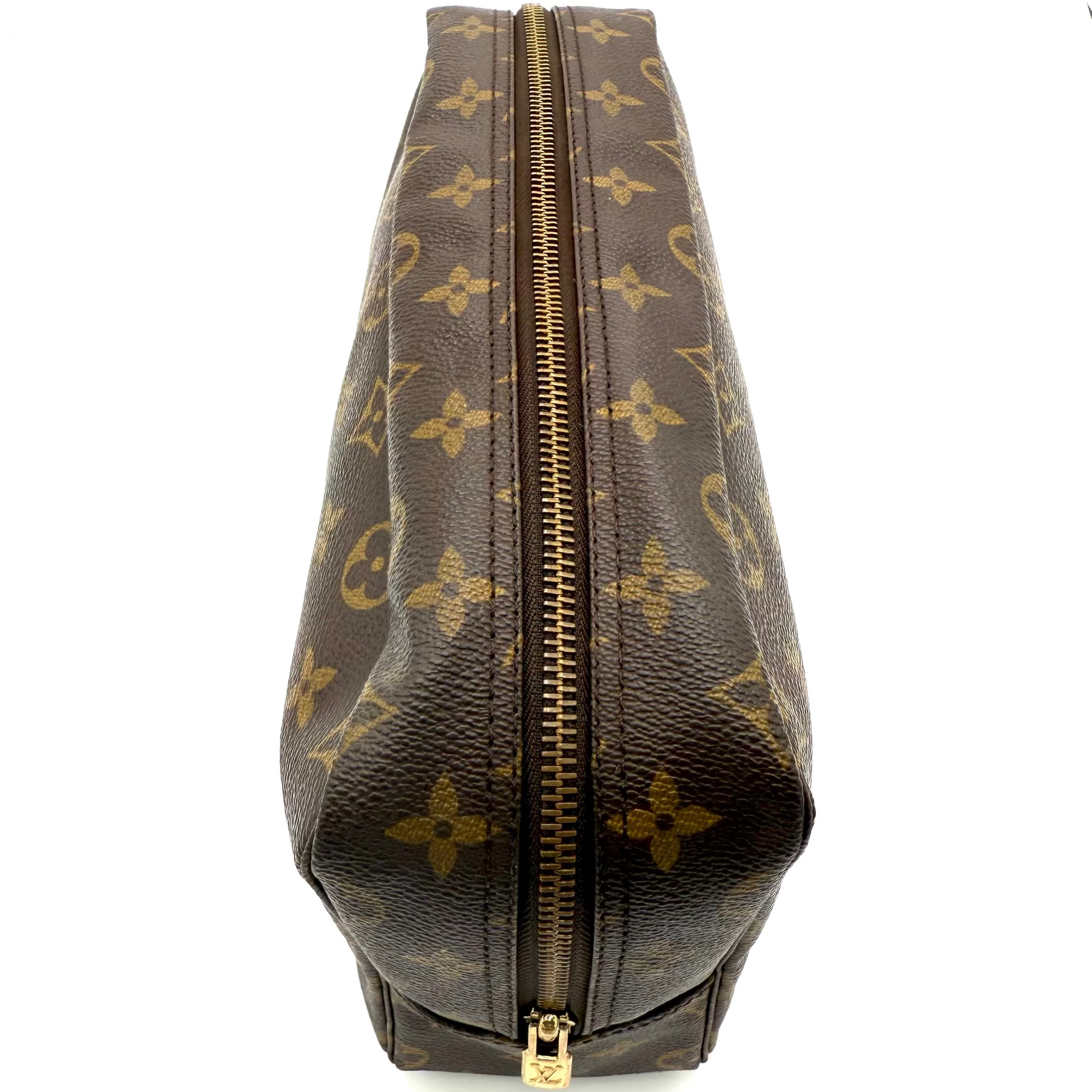A timeless essential from the Louis Vuitton archives, the Vintage Trousse 28 captures classic French sophistication in its purest form. Crafted from the iconic Monogram coated canvas, this elegant toiletry pouch combines durability with understated luxury — designed to stand the test of time.