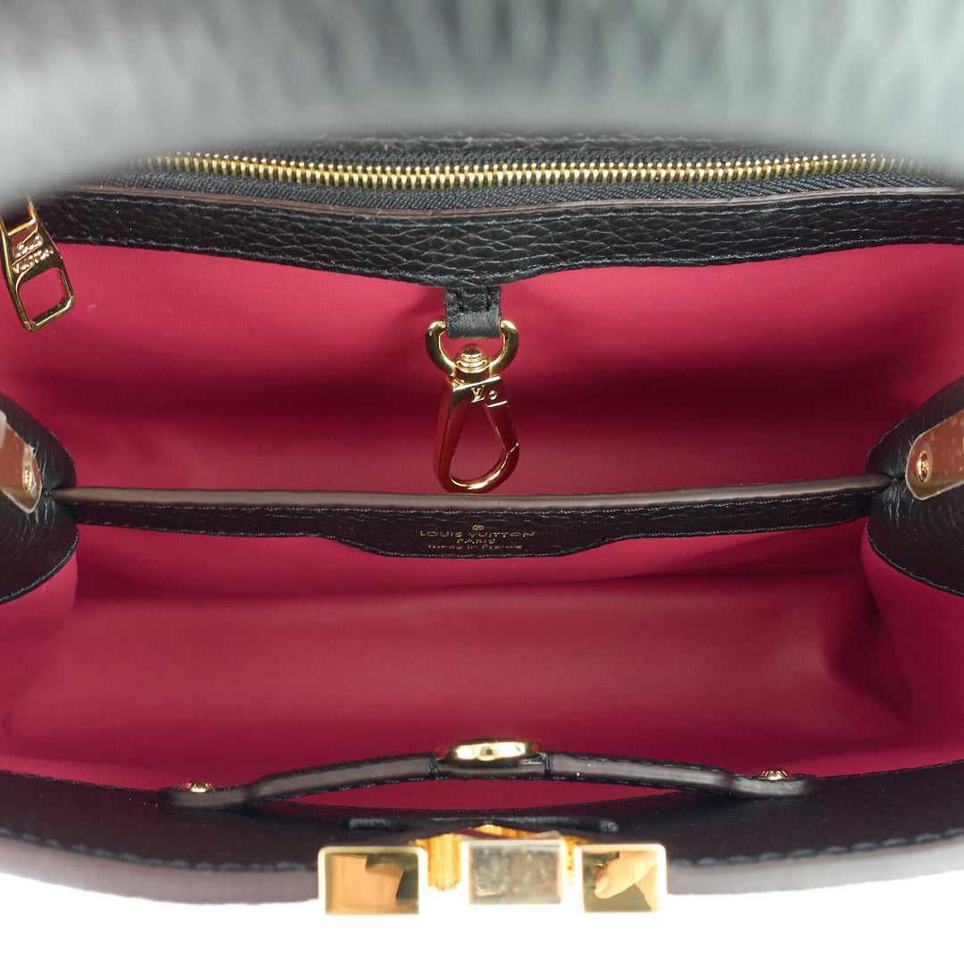 Reaching cult status when it first debuted in 2013, the Capucines showcases several distinct House signatures, including LV initials partly wrapped in leather, a unique flap detailed with a Monogram Flower motif, and jewel-like handle mounts reminiscent of vintage trunks.