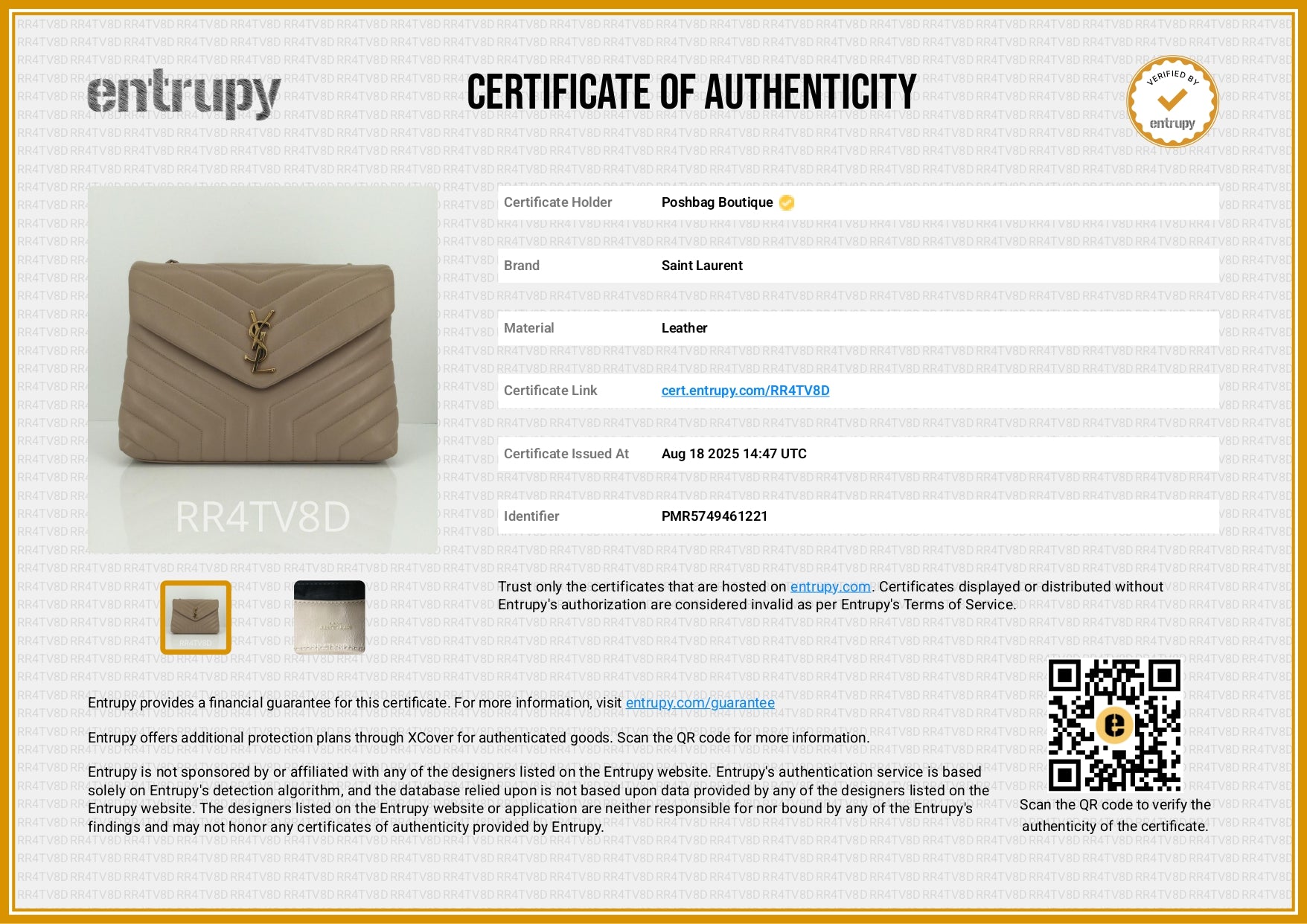Accessories: Includes receipt ($3,925 CAD, 2022), dustbag.