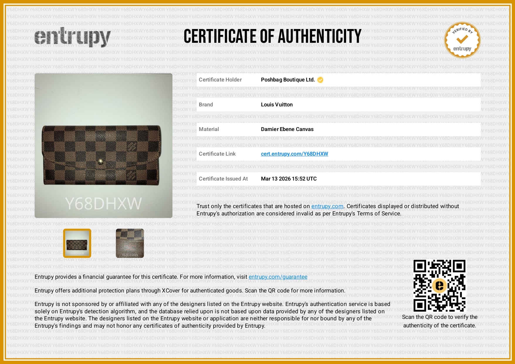 | Exterior material | Damier Ebene coated canvas |