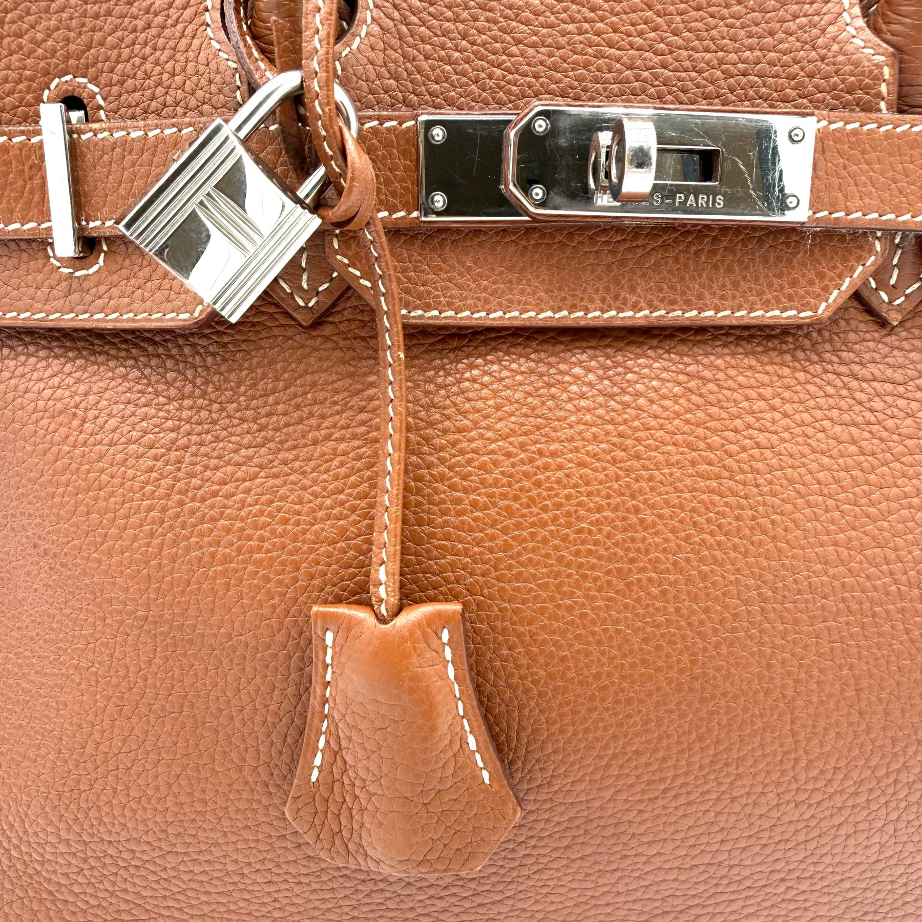 Crafted in France by master artisans, this Birkin showcases Hermès’ legendary attention to detail, from the supple grained leather to the precision-engineered palladium-tone metal fittings. The warm golden hue offers a neutral yet rich tone that transitions seamlessly across seasons and styles, while the cool-toned palladium hardware brings a modern, sophisticated contrast that enhances the bag’s elegant silhouette.