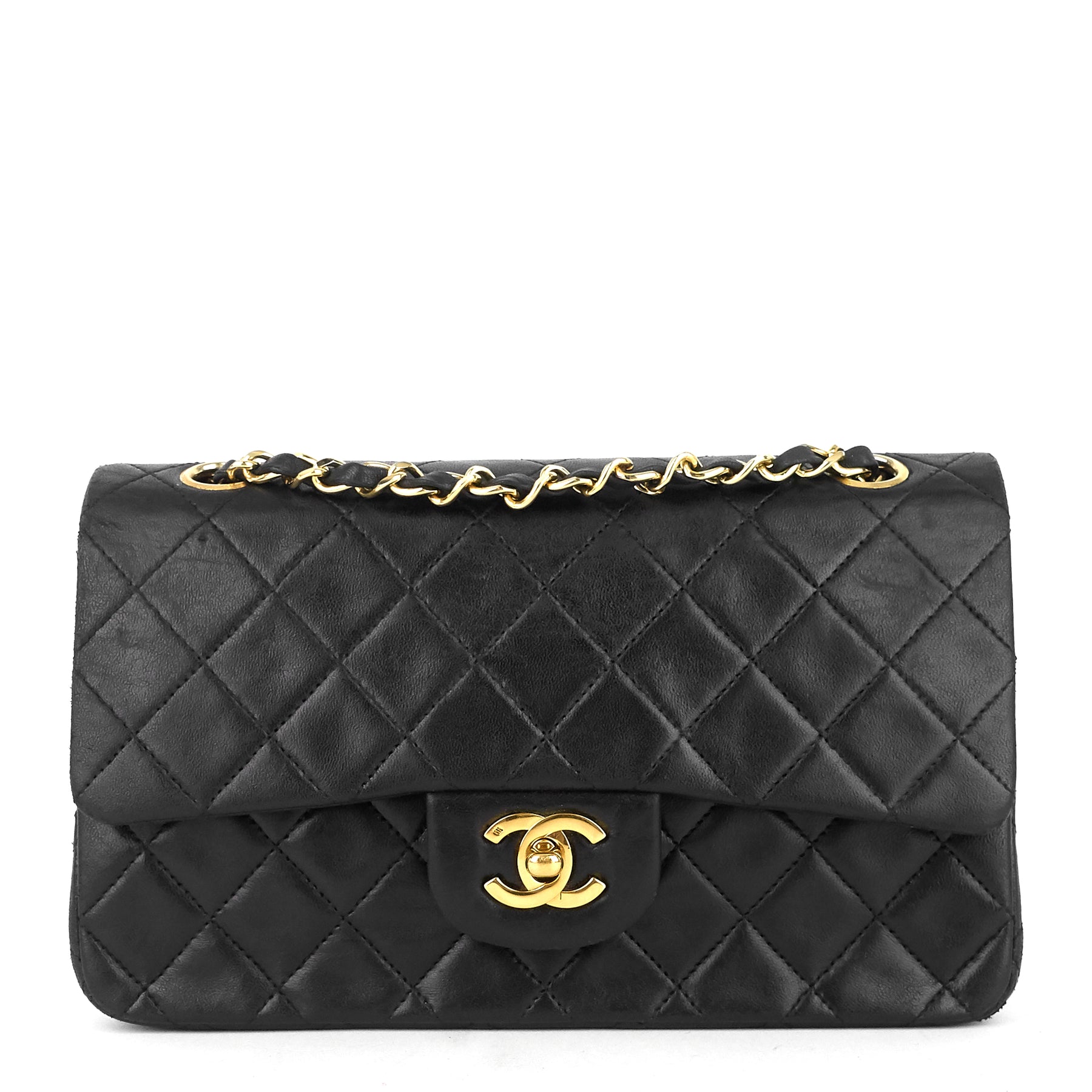 double flap lambskin leather shoulder bag