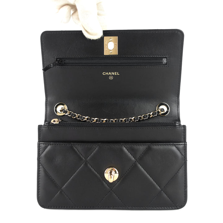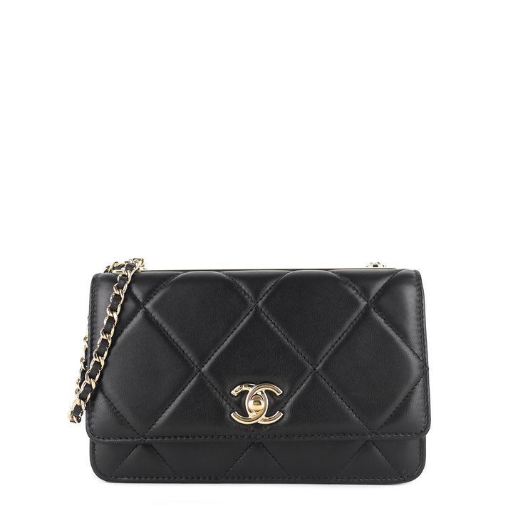 Trendy Large Lambskin Leather Wallet on Chain Bag